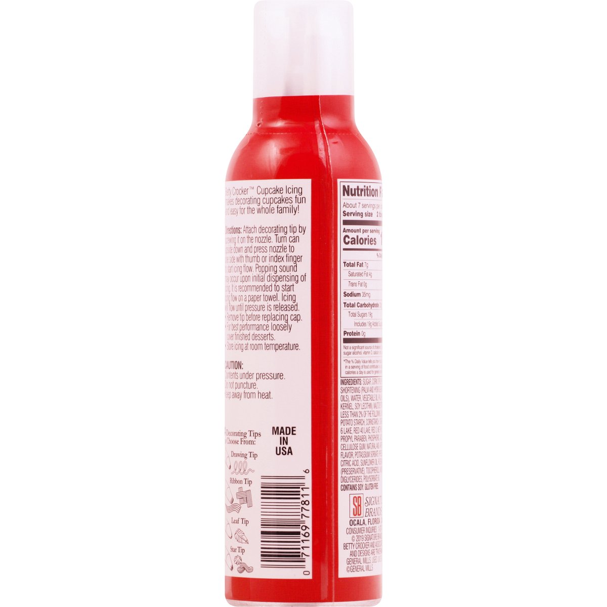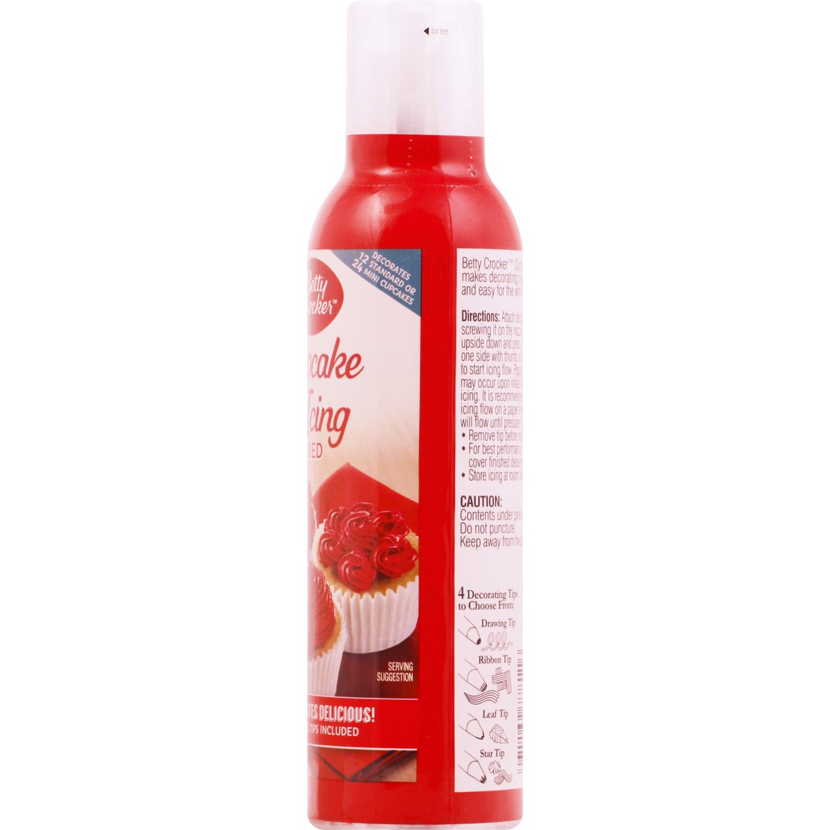 Decorates 12 standard or 24 mini cupcakes. Tastes delicious! 4 Tips included. Betty Crocker Cupcake Icing makes decorating cupcakes fun and easy for the whole family! 4 Decorating Tips to Choose from: Drawing Tip; Ribbon Tip; Leaf Tip; Star Tip. Consumer Inquiries: 1-877-726-8793. Made in USA.
