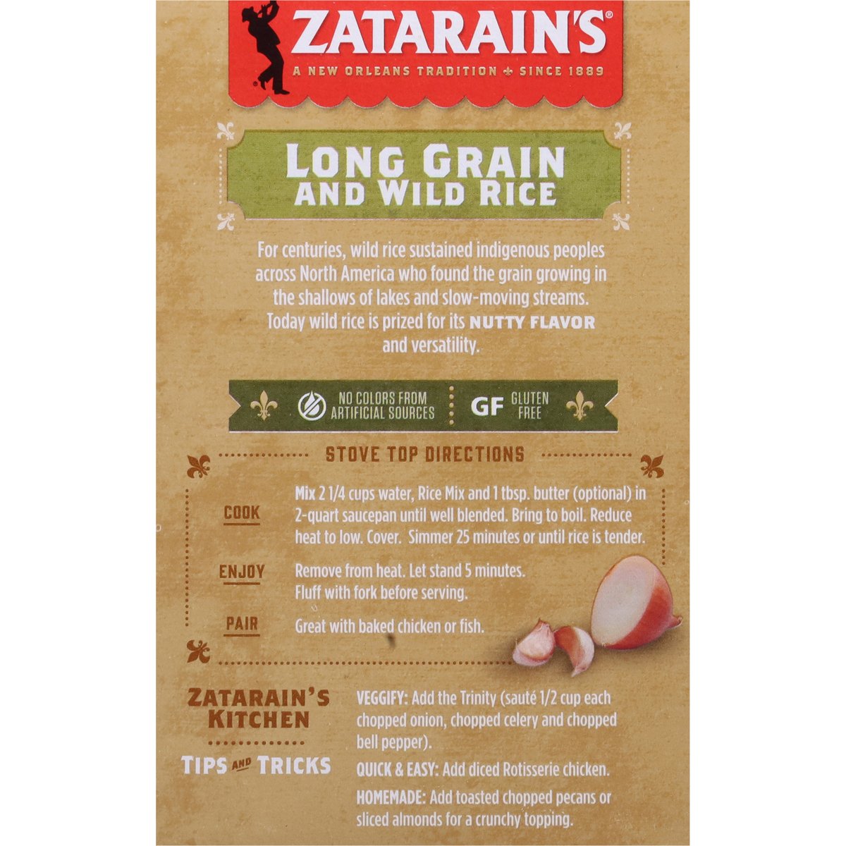 Long grain and wild rice with spices No artificial flavors. Gluten free. No MSG added (Except those naturally occurring glutamate). A New Orleans tradition + since 1889. For more than 300 years, New Orleans has been a cultural melting pot of influences that create a cuisine that only New Orleans knows how to dish out. Long grain & wild rice combines onions, garlic, and milk seasoning with long grain white and wild rice to make a versatile side for any meal. For centuries, wild rice sustained indigenous peoples across North America who found the grain growing in the shallows of lakes and slow-moving streams. Today wild rice is prized for its nutty flavor and versatility. zatarains.com. Follow the Zatarain's tradition on Facebook and Instagram! Visit zatarains.com for more fresh, bold recipe ideas. Love our mixes? Give us a call and let us know! 1-877-837-3796.