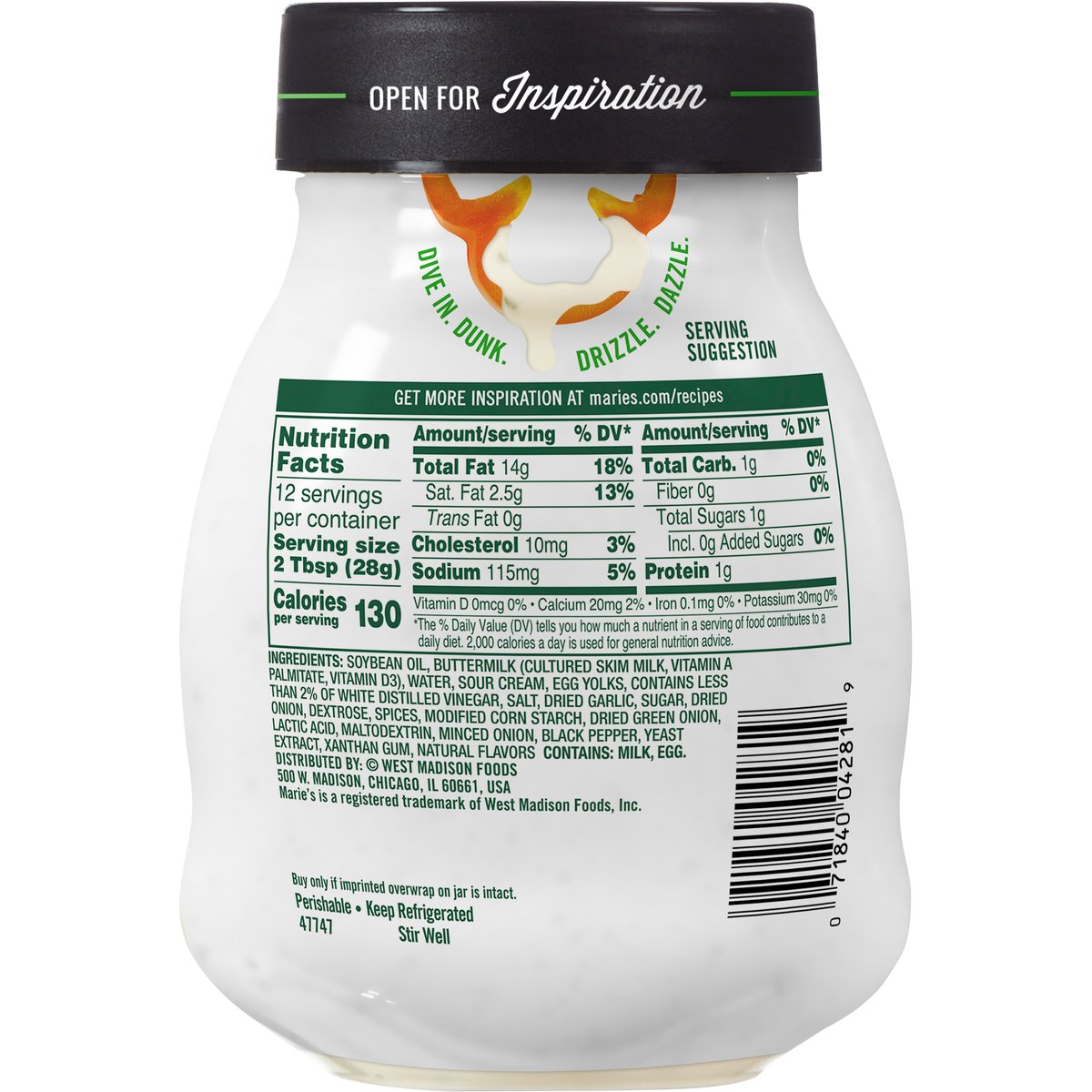 Gluten-free. Open for inspiration. Dive in. Dunk. Drizzle. Dazzle. how2recycle.info. Dial up the deliciousness in all your snacks and entrees. Get more inspiration at Facebook.com/MariesDressing. Questions or comments, call 1-800-339-1051.