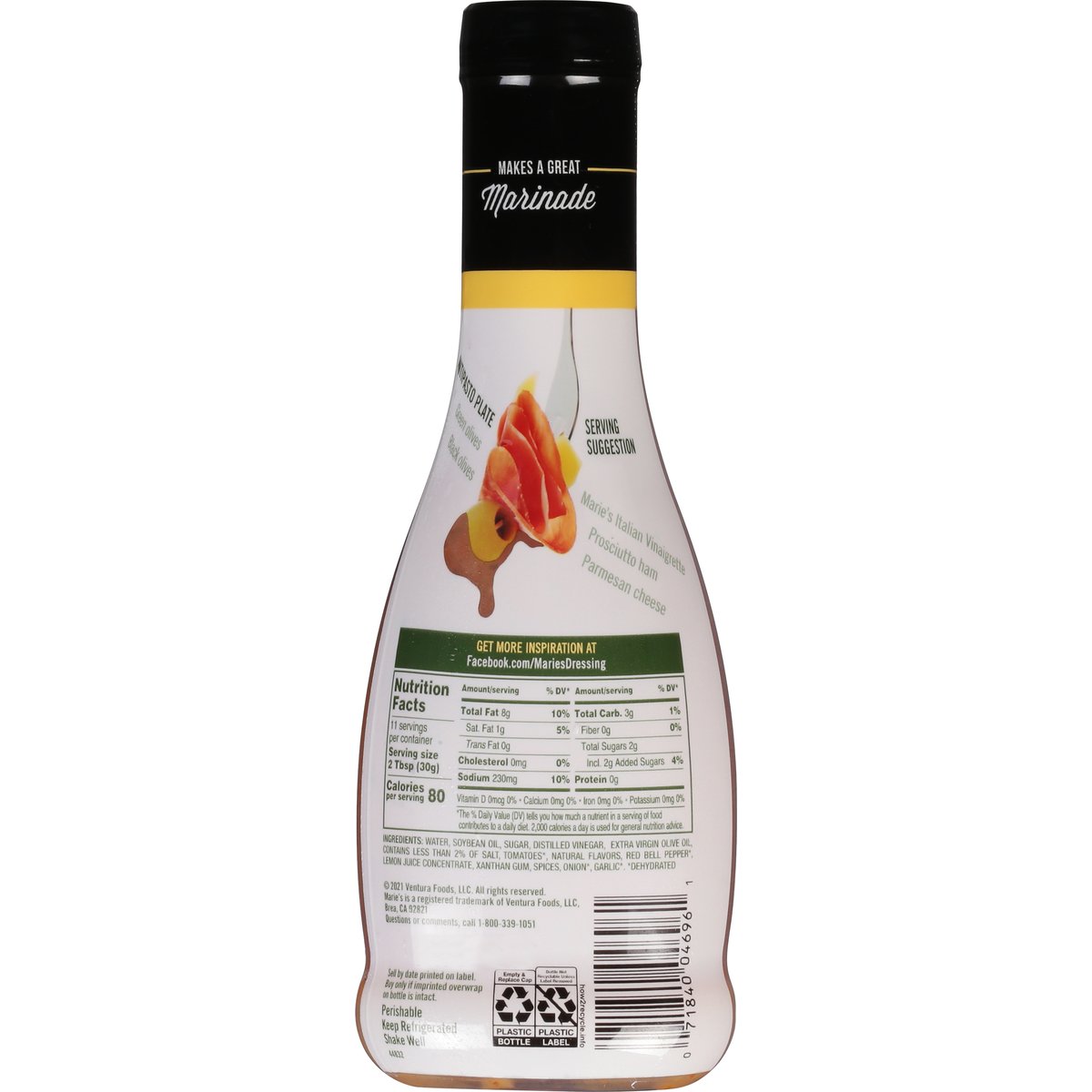 Gluten free. Makes a great marinade. how2recycle.info. Get more inspiration at Facebook.com/MariesDressing. Questions or comments, call 1-800-339-1051.
