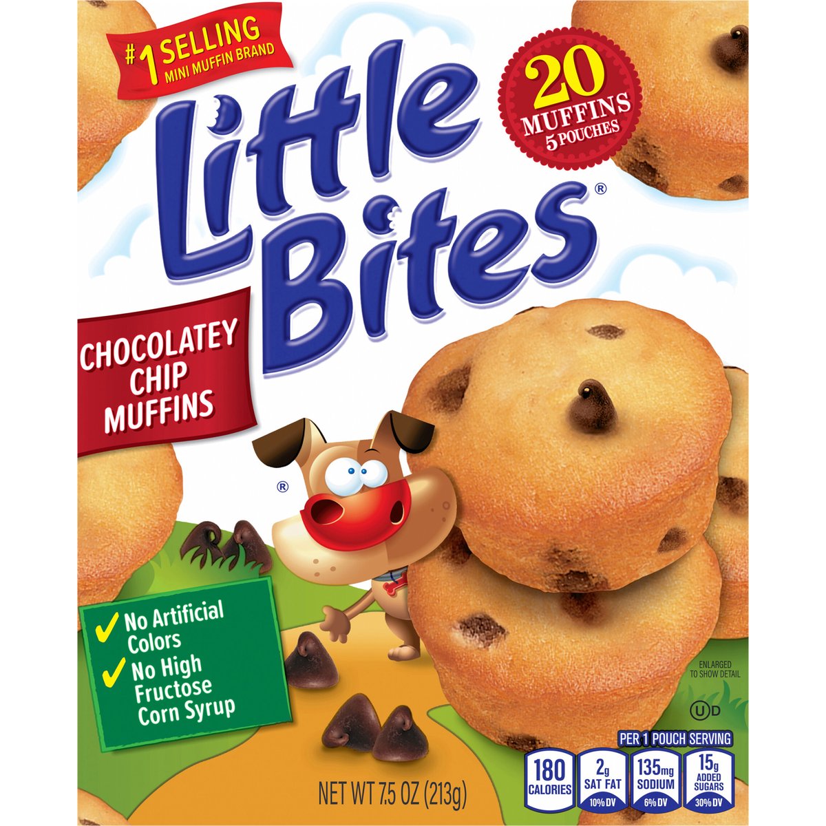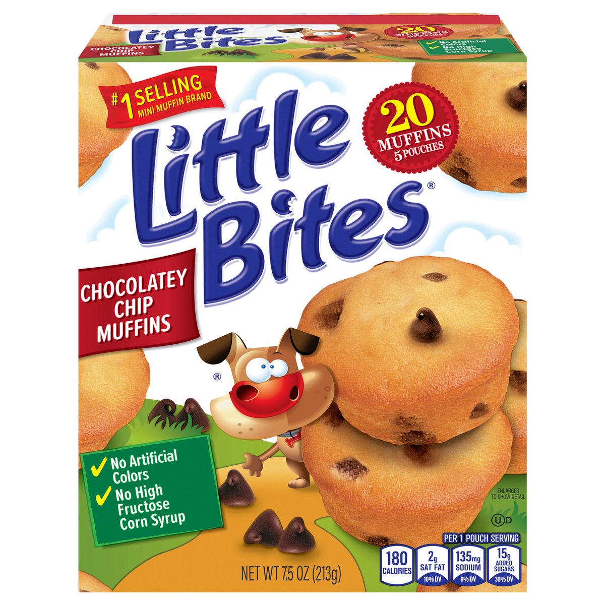 Per 1 Pouch Serving: 180 calories; 2 g sat fat (10% DV); 135 mg sodium (6% DV); 15 g added sugars (30% DV). #1 selling mini muffin brand. No artificial colors. No high fructose corn syrup. It’s always the right time for Little Bites muffins! www.littlebites.com. how2recycle.info. SmartLabel: Scan for more food information or call 1-800-432-8266. fb.com/LittleBitesSnacks. Follow us at...Facebook. Instagram. Pinterest. We are committed to providing you with quality products and welcome your questions and comments. Please contact us at 1-800-984-0989. When contacting us, please include the Proof-of-Purchase (Bar Code) and stamped date code. For more information visit us at: www.littlebites.com.