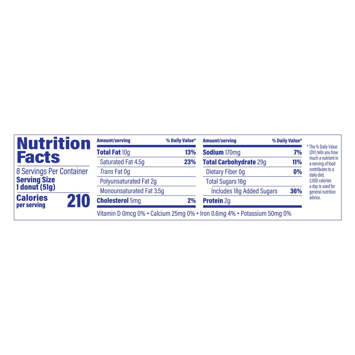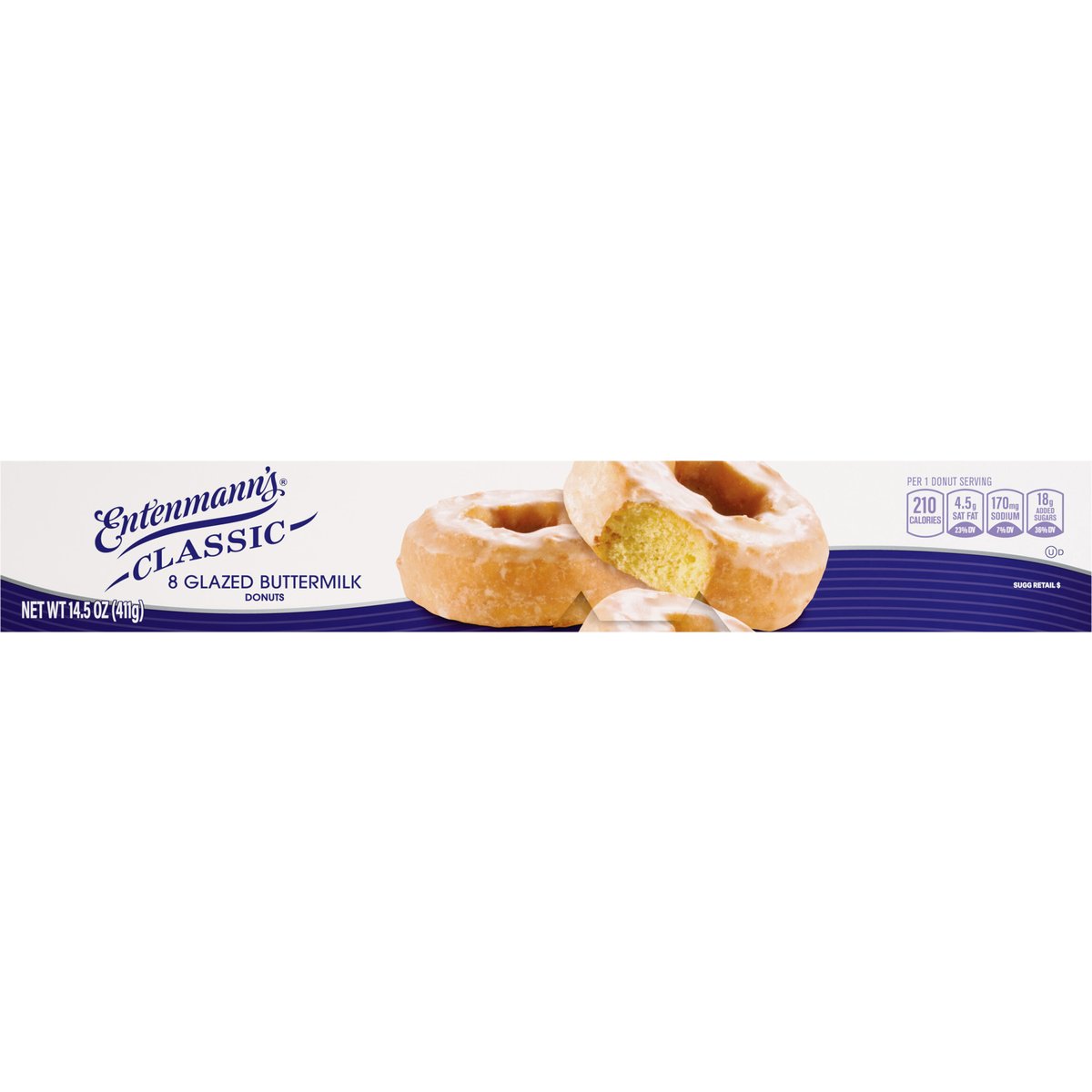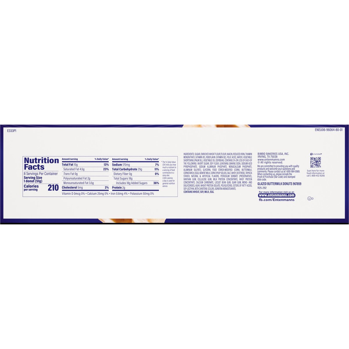 Per 1 Donut Serving: 240 calories; 4.5 g sat fat (23% DV); 170 mg sodium (7% DV); 18 g added sugars (36% DV). In 1898 the Entenmann Family promised to deliver only quality baked goods to their customers. Today, we reaffirm that promise and honor our traditions. William Entenmann. www.entenmanns.com. SmartLabel: Scan for more food information or call 1-800-432-8266. fb.com/Entenmanns. We are committed to providing you with quality products and welcome your questions and comments. Please contact us at 1-800-984-0989. When contacting us, please include the Proof-of-Purchase (Bar Code) and stamped date code. For more information visit us at: www.entenmanns.com.