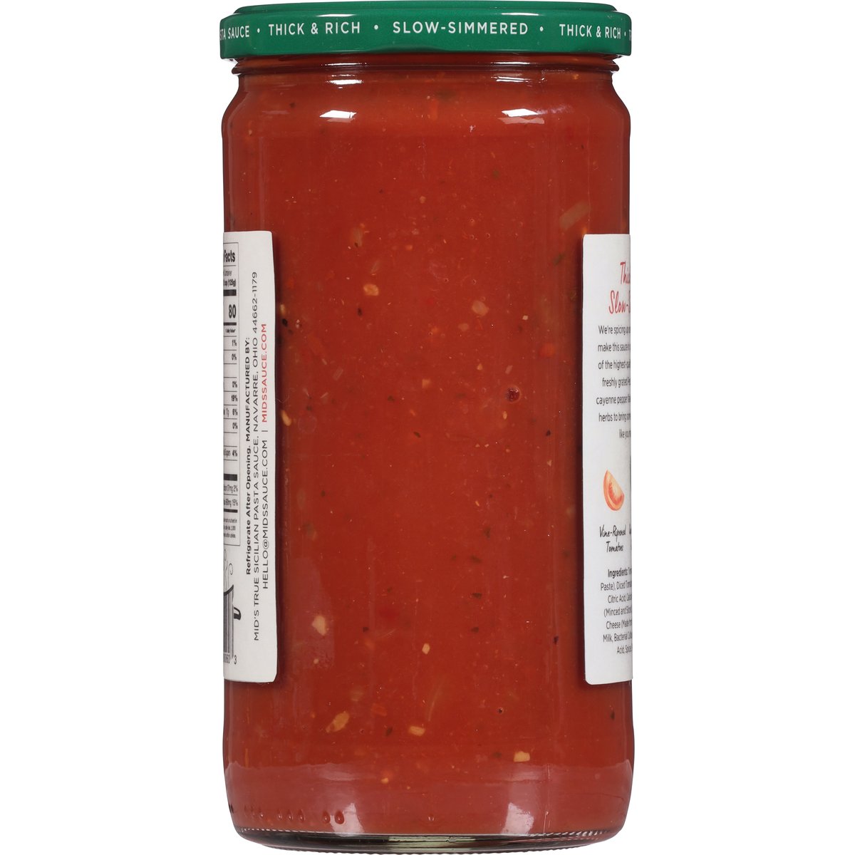 Since 1938. All natural. New recipe! Thick. Rich. Slow-Simmered. We're spicing up our Old-World recipe. We make this sauce in open kettles with chunks of the highest-quality, all-natural tomatoes, freshly grated Pecorino Romano cheese, cayenne pepper flakes, and our own blend of herbs to bring some hearty heat that tastes like you made it by hand. Vine-ripened tomatoes. Quality herbs & spices. Imported olive oil. midssauce.com. hello@midssauce.com.