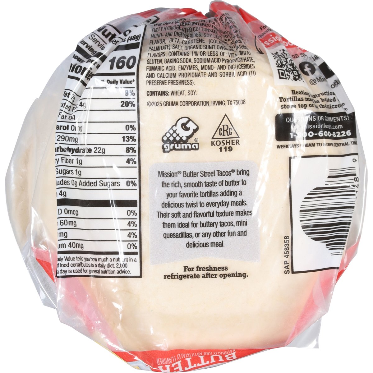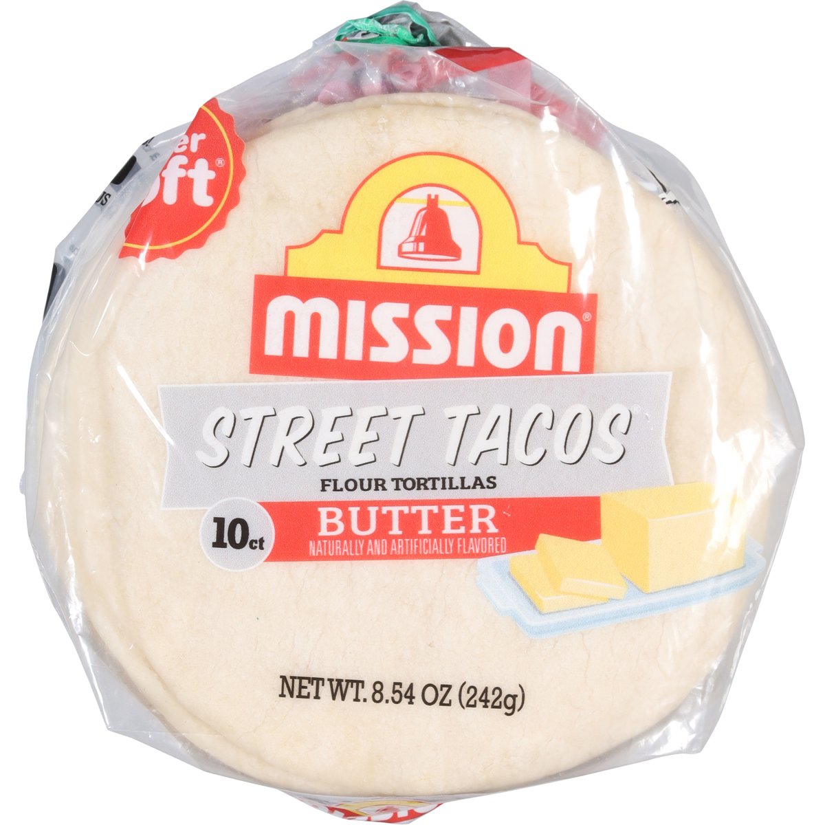 Naturally and artificially flavored. New. Mission butter street tacos bring the rich, smooth taste of butter to your favorite tortillas adding a delicious twist to everyday meals. Their soft and flavorful texture makes them ideal for buttery tacos, mini quesadillas, or any other fun and delicious meal. missionfoods.com. On social media too! Facebook. Instagram. YouTube. @MissionFoodsUS. For great recipe ideas, questions & comments, visit: missionfoods.com. Questions or comments? missionfoods.com. 1-800-600-8226 weekdays 9:00AM to 5:00PM Central Time.
