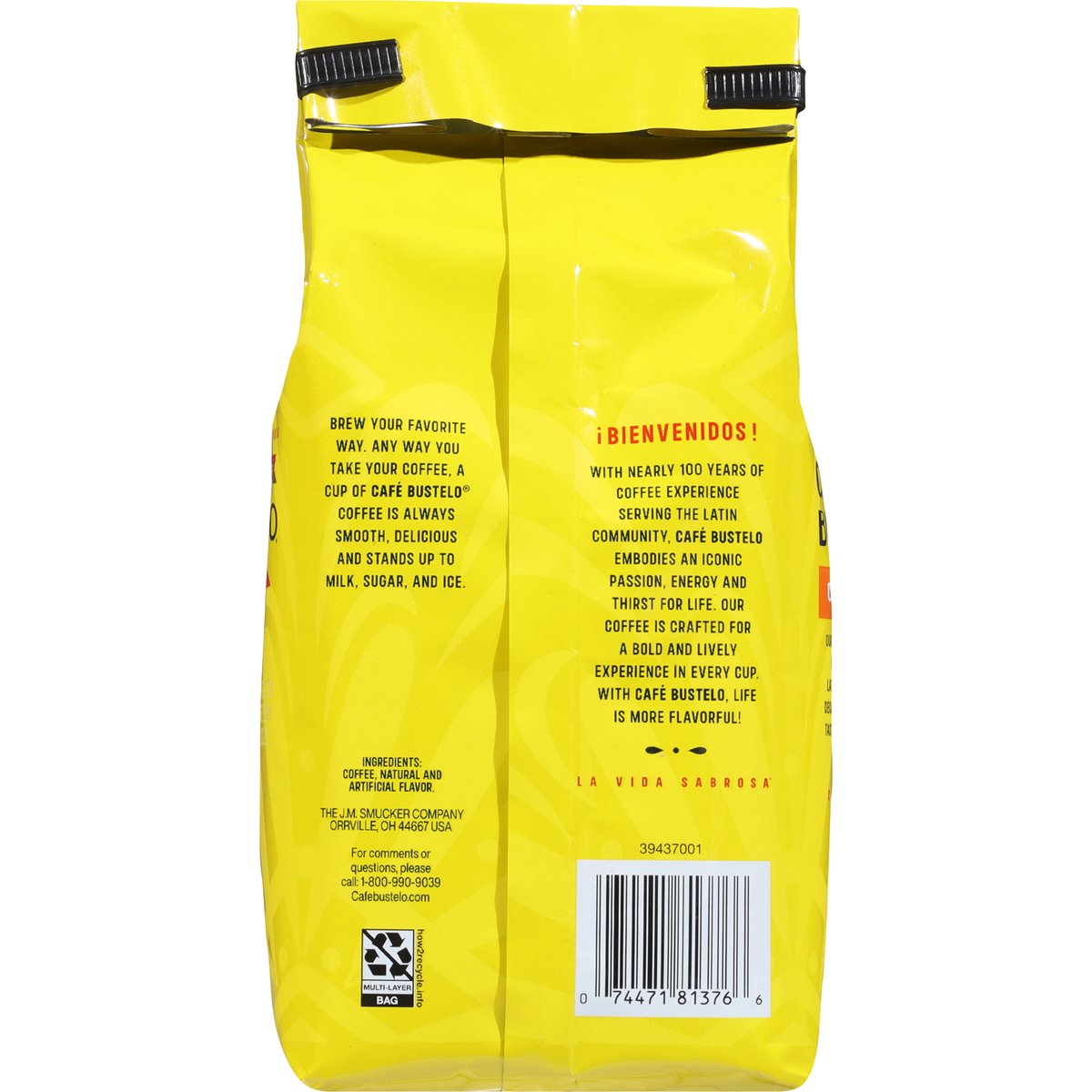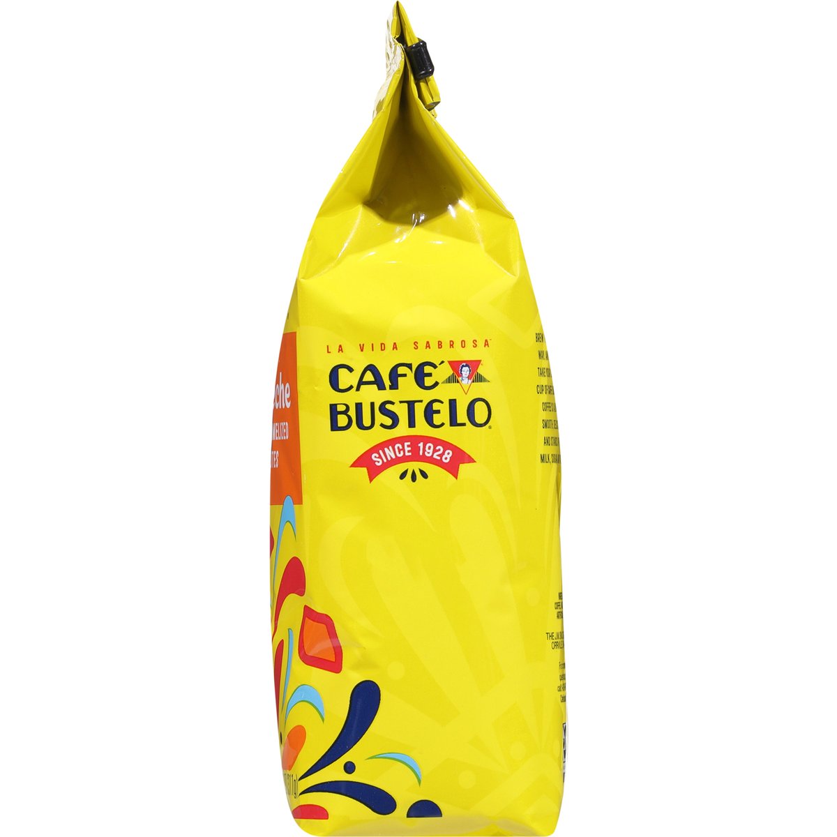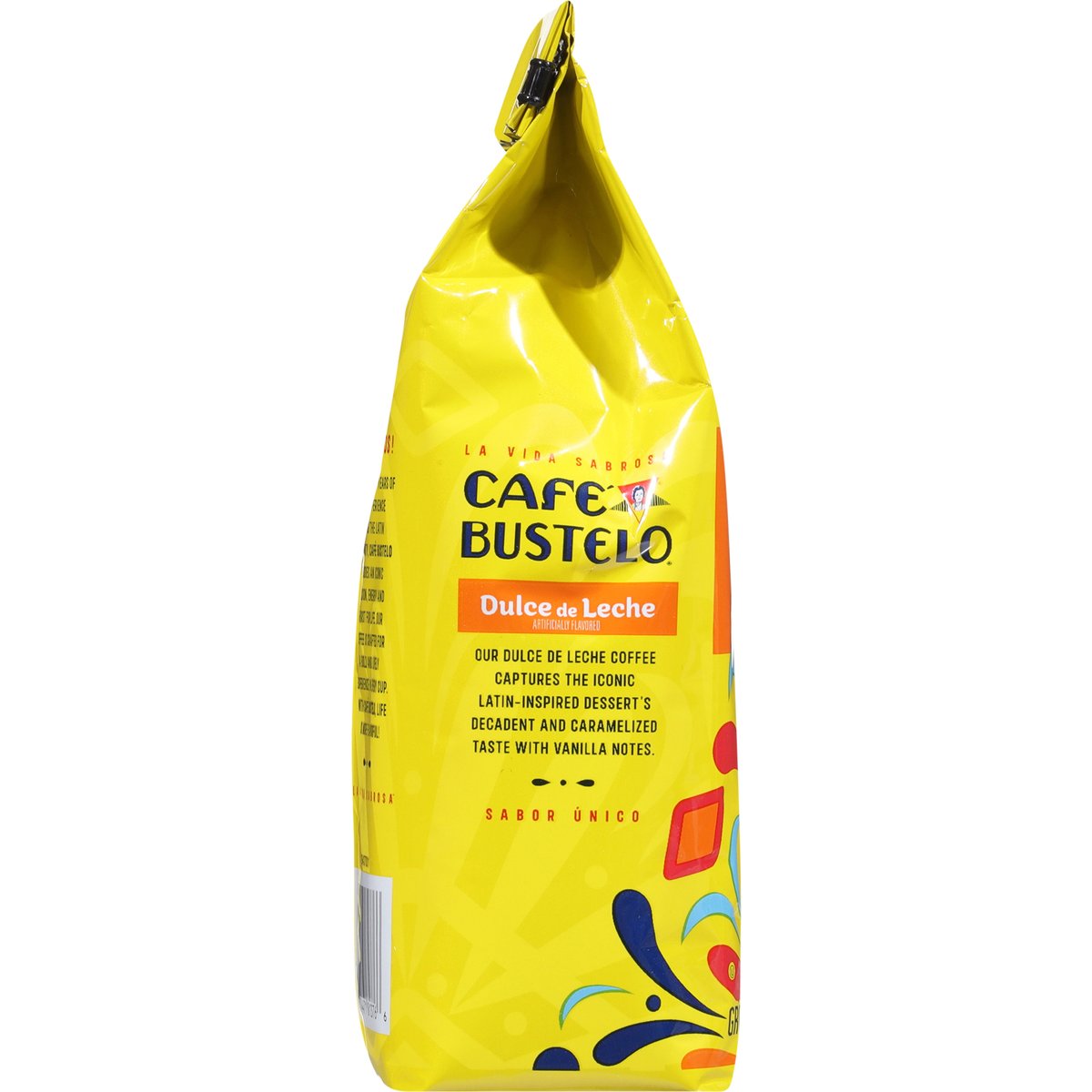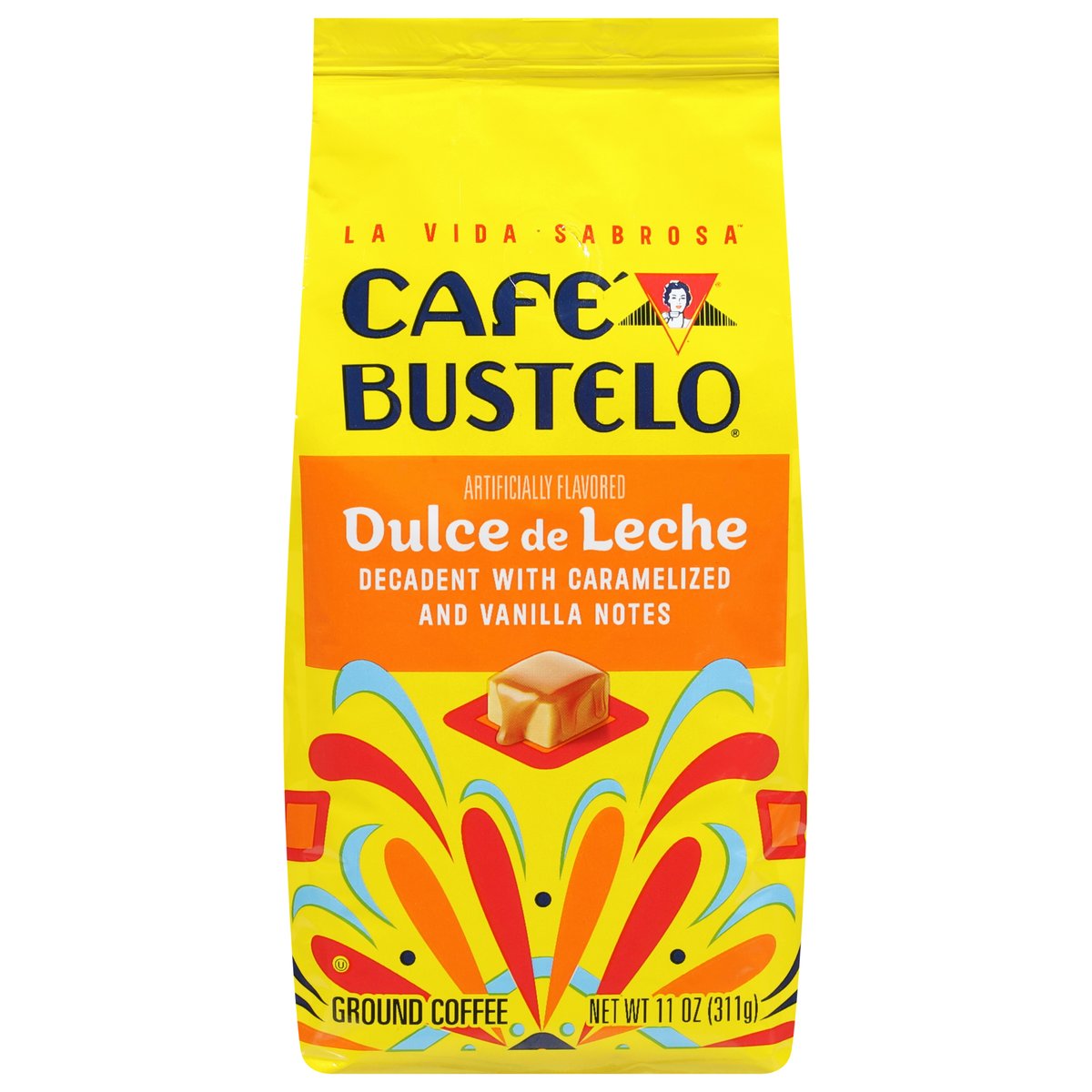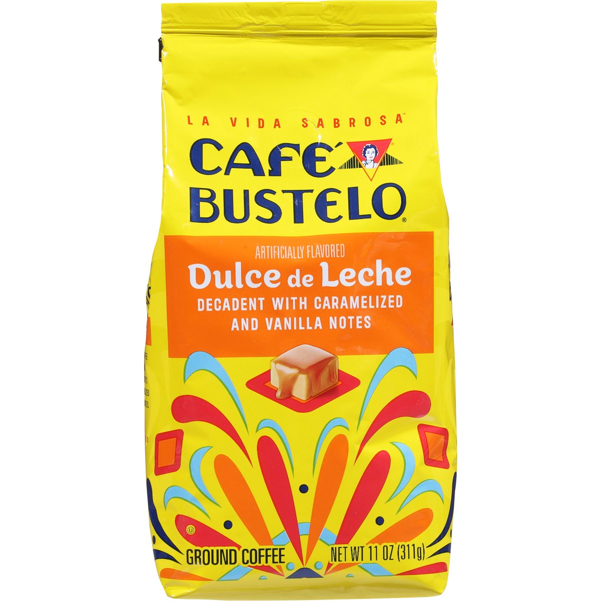 Decadent with caramelized and vanilla notes. Artificially flavored. Bienvenidos! With nearly 100 years of coffee experience serving the Latin community, Cafe Bustelo embodies an iconic passion. Energy and thirst for life our coffee is crafted for a bold and lively experience in every cup with Cafe Bustelo, life is more flavorful! Our Dulce de Leche Coffee captures the iconic Latin-inspired dessert’s decadent and caramelized taste with vanilla notes. Since 1928. Cafebustelo.com. how2recycle.info. For comments or questions, call: 1-800-990-9039. Cafebustelo.com.