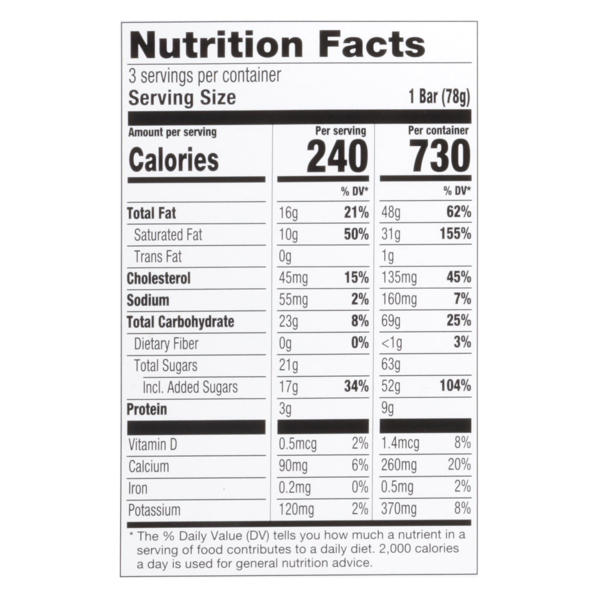 240 calories per 1 bar. See nutrition information for total fat and saturated fat content. New. Velvety cheesecake ice cream swirled with strawberry sauce, covered in white chocolate with crunchy graham cracker crust pieces. Silky sweet with a touch of tart. That's Dazs. No rBST used. Milk & cream from cows not treated with the growth hormone rBST. No significant difference has been shown between milk from rBST treated and non-rBST treated cows. More reason to love: No palm oil. haagendazs.com. SmartLabel: Scan for more food information or call 1-866-311-6350. Questions or comments? Visit us at haagendazs.com. 1-866-311-6350. Rainforest Alliance: People & nature. Cocoa. Please recycle this carton. Compostable sticks.