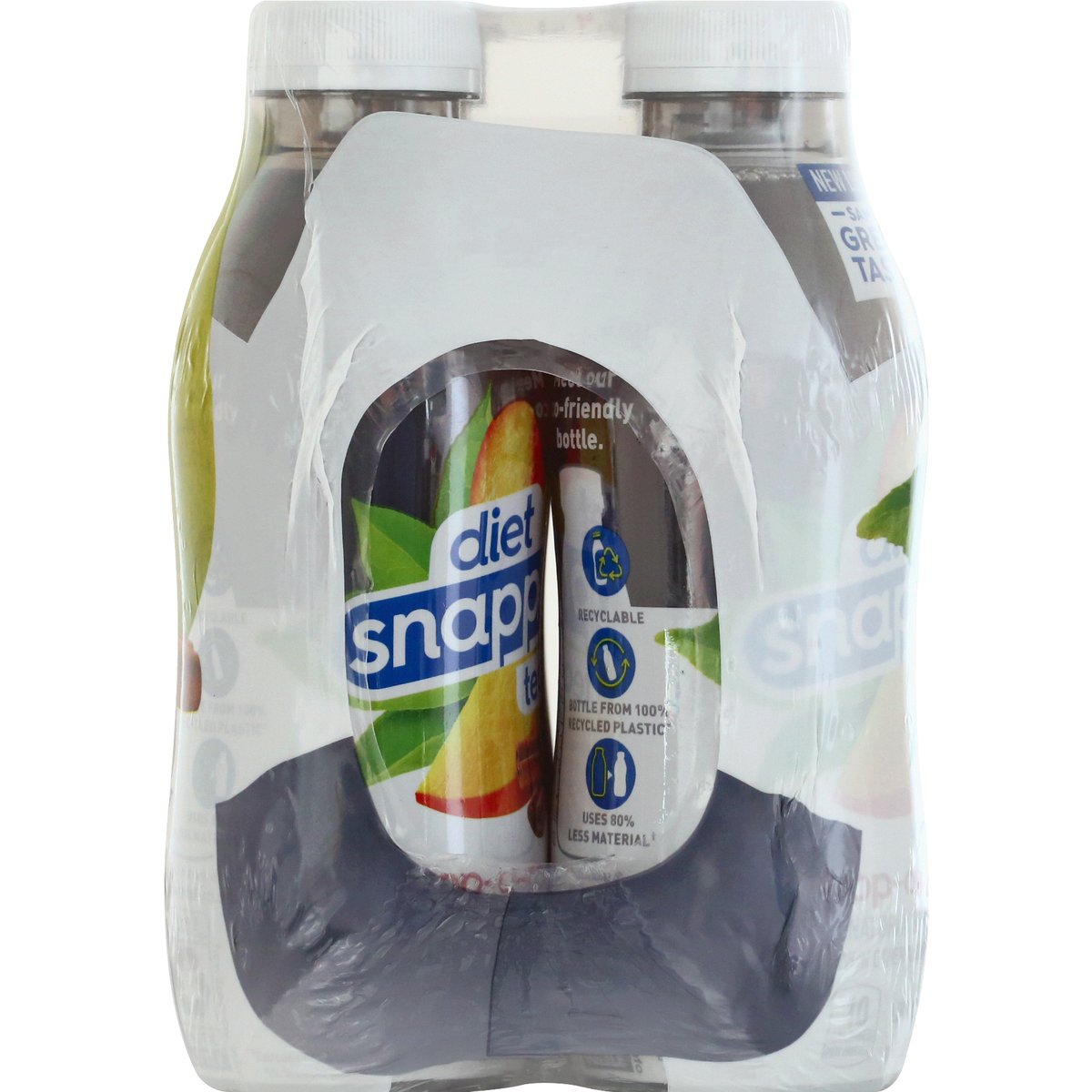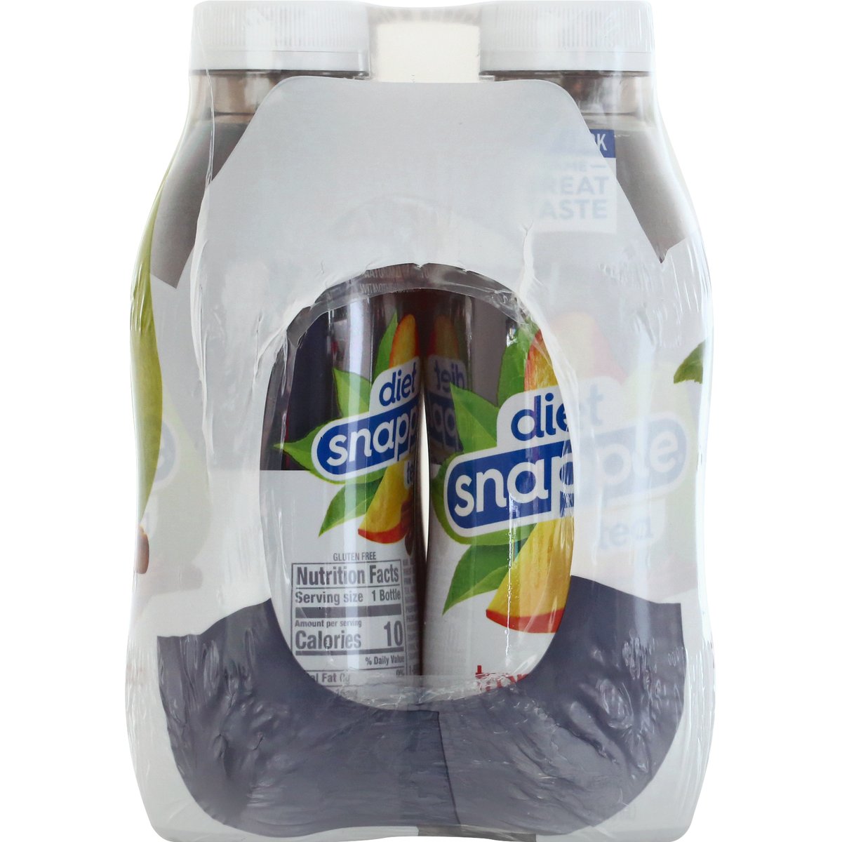 Naturally flavored with other natural flavors. 10 calories per bottle. Gluten free. Low calorie. New look. Same great taste. You've got great taste. snapple.com. how2recycle.info. Learn more (at)SnappleBottleFacts.com. Bottle for 100% recycled plastic (Excludes cap & label). New eco-friendly bottle. Meet our eco-friendly bottle. Recyclable. Uses 80% less materials (vs. Snapple glass).