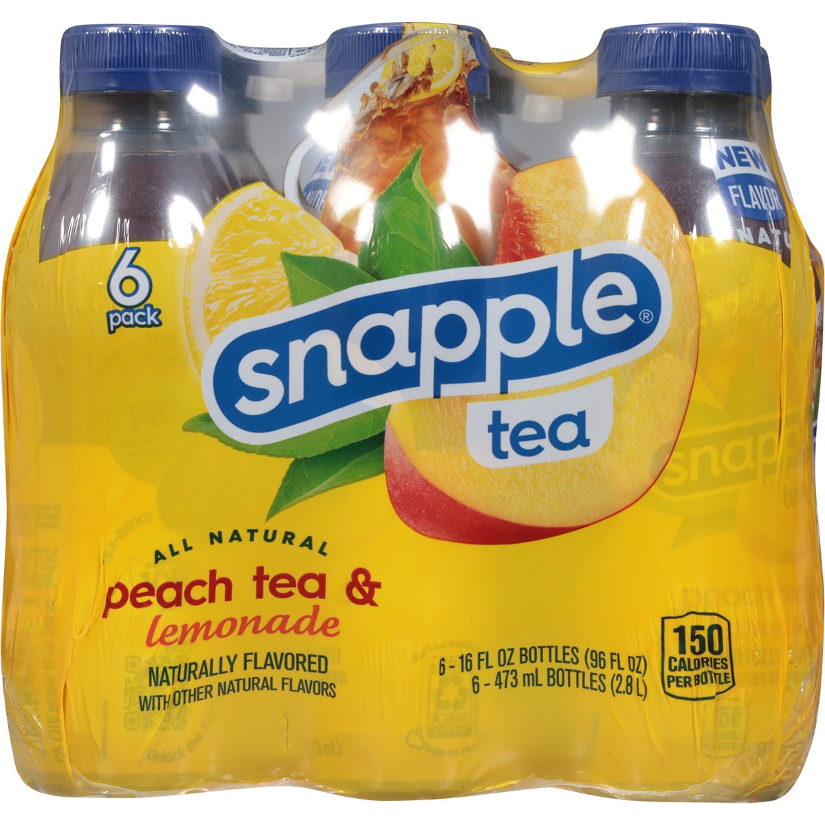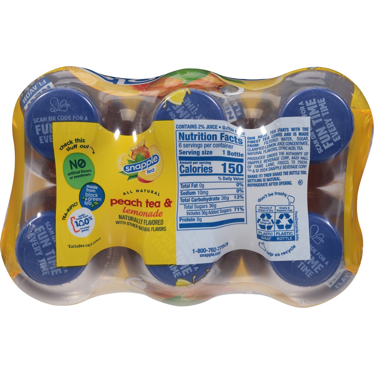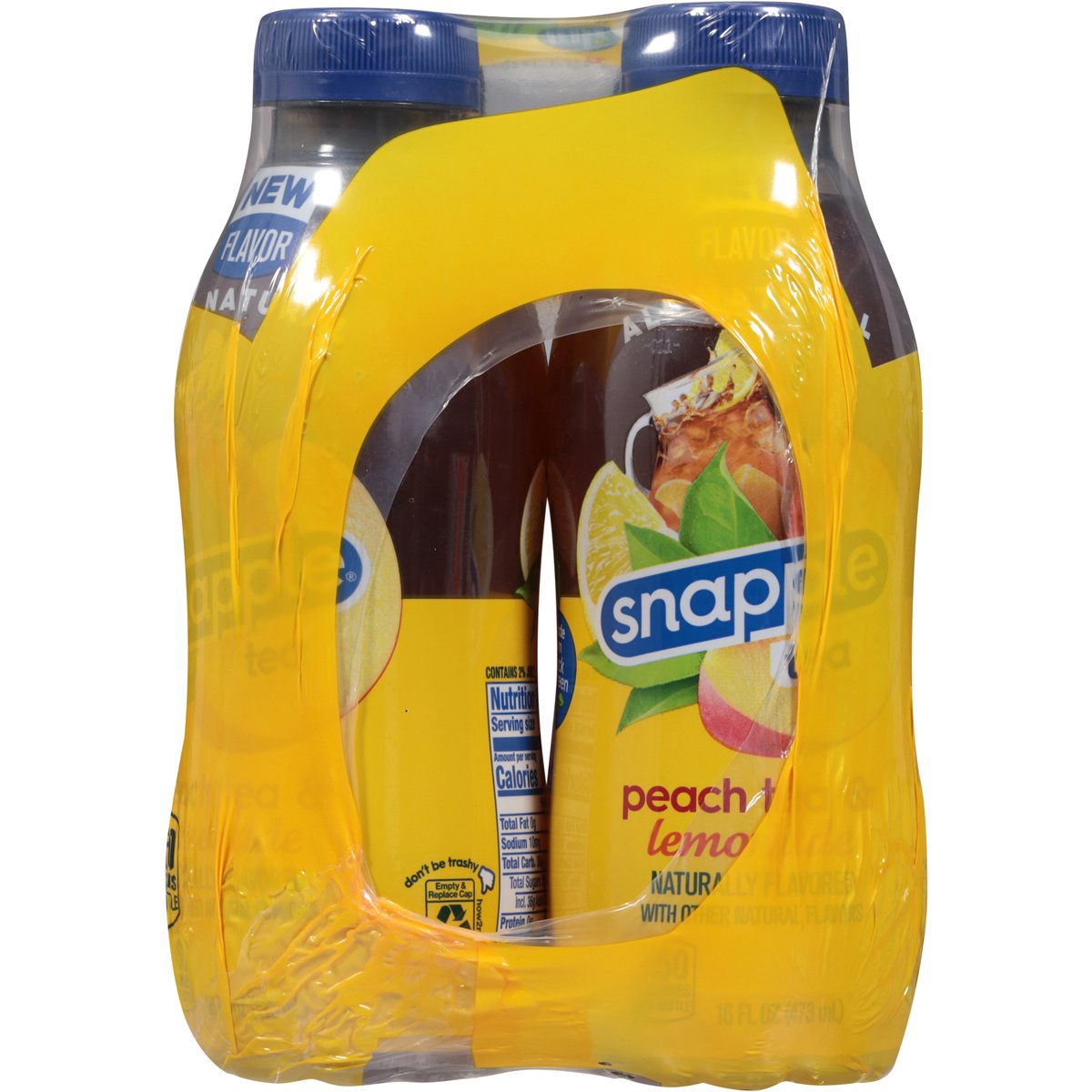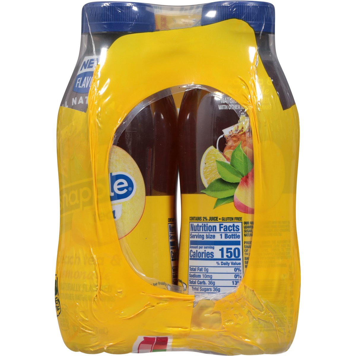 Naturally flavored with other natural flavors. No artificial flavors or sweeteners. 150 calories per bottle. Gluten free. All natural. Tea-rific! snapple.com. how2recycle.info. 1-800-762-7753. Bottle made from 100% recycled plastic*. * Excludes cap & label. Don't be trashy, help us recycle.