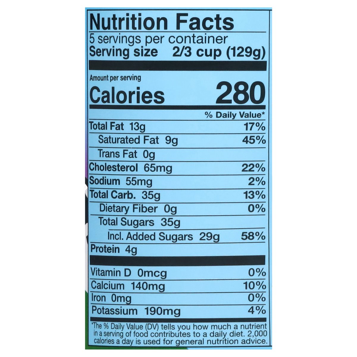 Sweet cream ice cream with strawberry swirls. 280 calories per 2/3 cup. Certified gluten free. gfco.org. Vermont's finest. Best when shared among friends. This flavor is large & in charge! While you could attempt to jam on this strawberry-swirled, sweet cream concoction alone, we recommend you consume responsibly...with friends. Making the best possible ice cream in the best possible way. Your satisfaction guaranteed. benjerry.com. how2recycle.info. Get in touch with us: benjerry.com/contact-us. Learn more @benjerry.com. Certified Fair Trade by FLOCert. Sugar: mass balance is used to match Fairtrade sourcing, total 62%, excluding water & dairy. info.fairtrade.net/sourcing. FSC: Mix - Packaging.