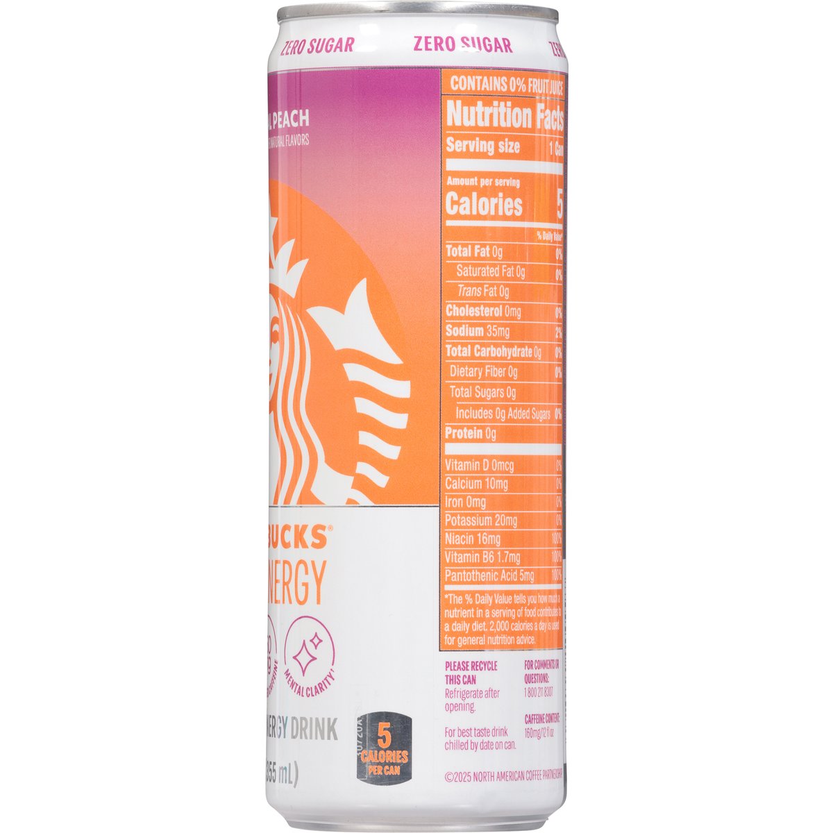 Starbucks Energy Drink, Zero Sugar, Tropical Peach, Sparkling