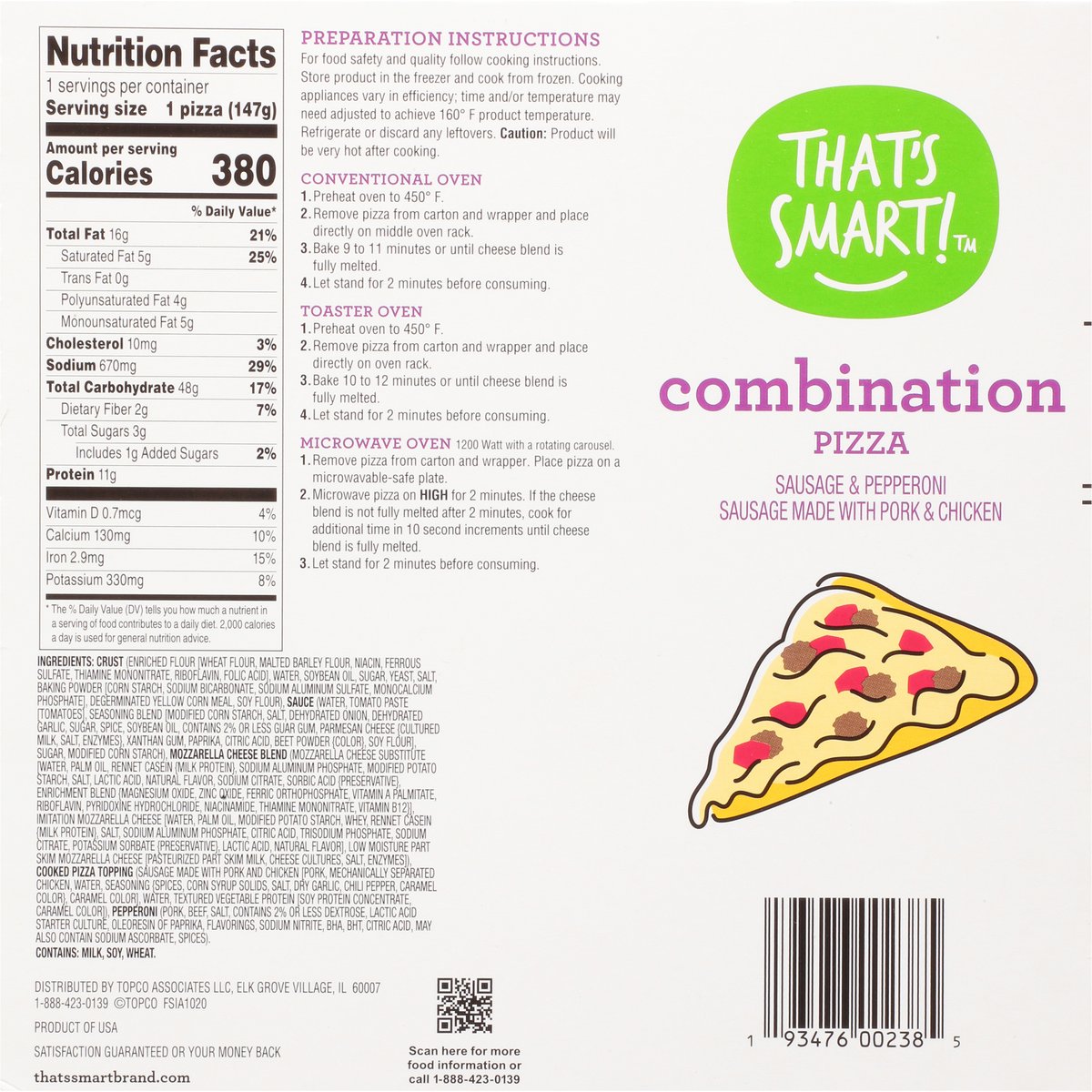 Sausage made with pork & chicken. Cook & serve. Satisfaction guaranteed or your money back. U.S. inspected and passed by Department of Agriculture. thatssmartbrand.com. Scan for more food information or call 1-888-423-0139. Product of USA.