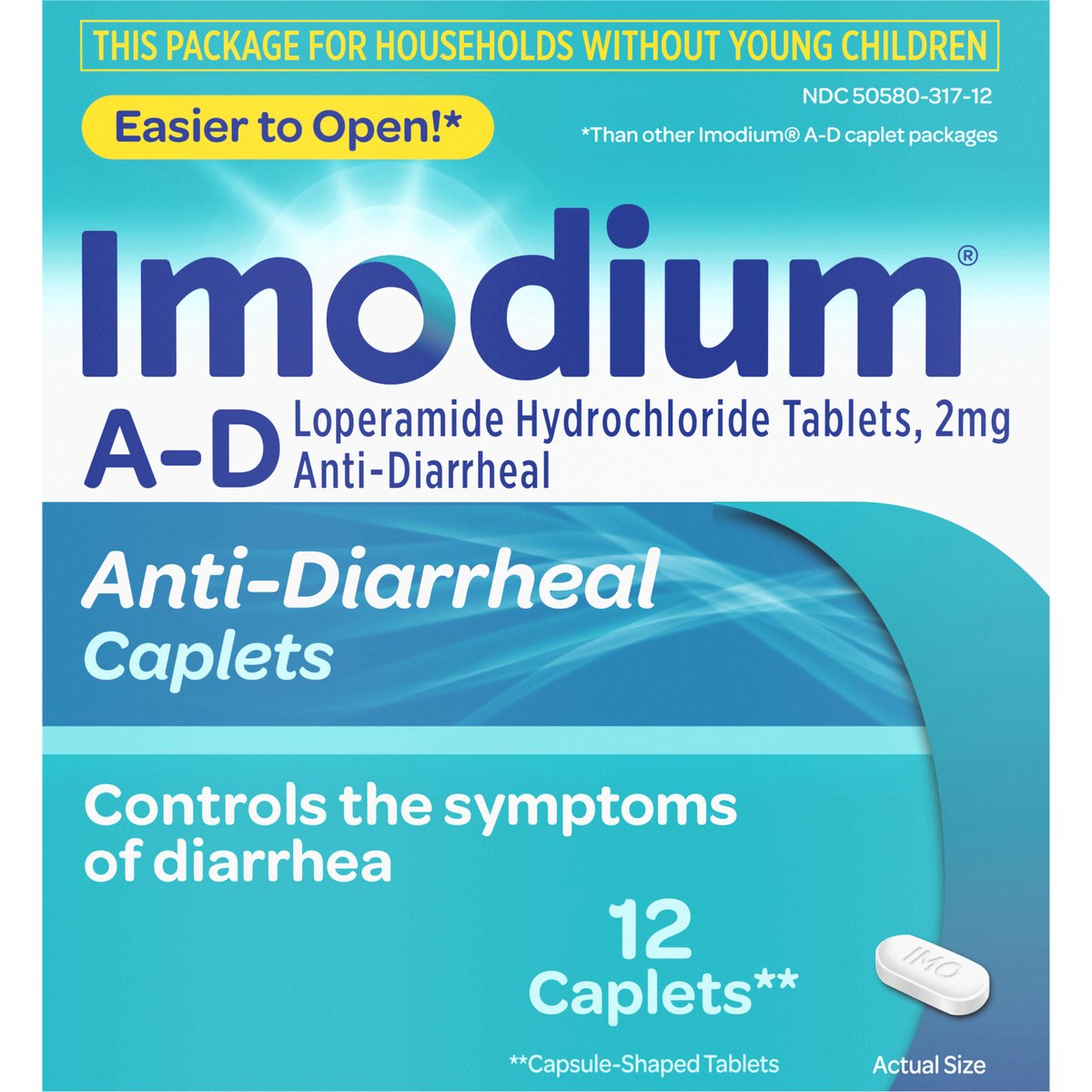 A-D loperamide hydrochloride tablets, 2 mg anti-diarrheal. Controls the symptoms of diarrhea. www.imodium.com. www.jjcipats.com. How can we help? 1-877-895-3665. Questions or comments? 1-877-895-3665 (toll-free) or 215-273-8755 (collect). Active ingredient made in Italy