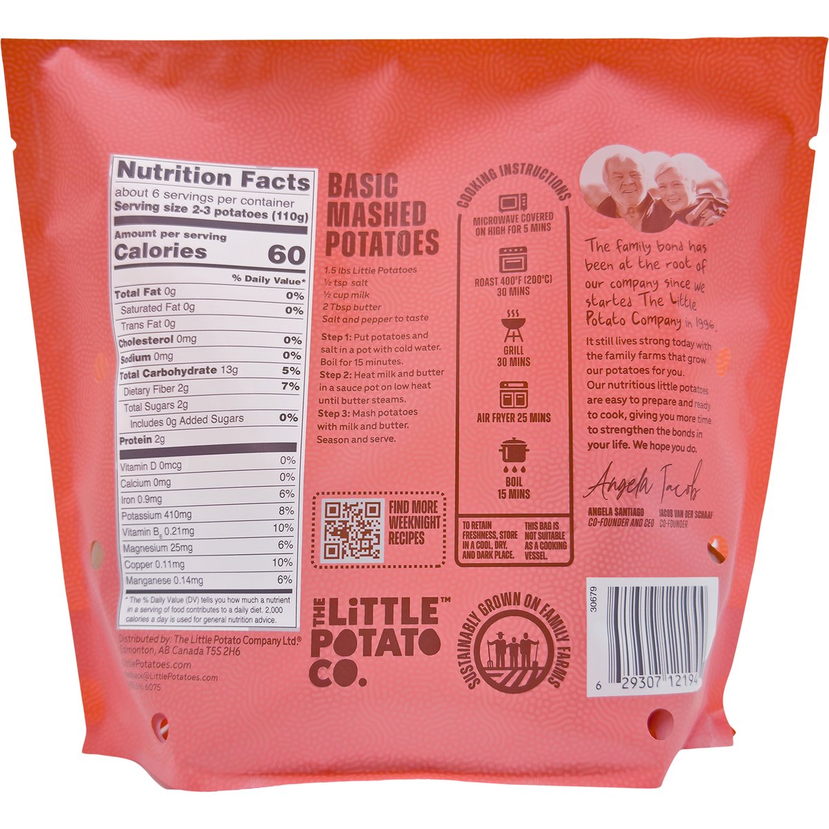 Gluten free. The only thing you'll need to peel. Ready in as little as 5 mins. A little win for a busy night at home. Always pre-washed. 6 servings per bag. A fresh whole food. The family bond has been at the root of our company since we started The Little Potato Company in 1996. It sill lives strong today with the family farms that grow our potatoes for you. Our nutritious littles potatoes are easy to prepare and ready to cook, giving you more time to strengthen the bonds in your life. We hope you do. - Angela Jacob. Angela Santiago Co-Founder and CEO. Jacob Van Der Schaaf Co-Founder. Fresh from our family farms. LittlePotatoes.com. Find more weeknight recipes. feedback(at)littlepotatoes.com. 1.855.516.6075. Sustainably grown on family farms.