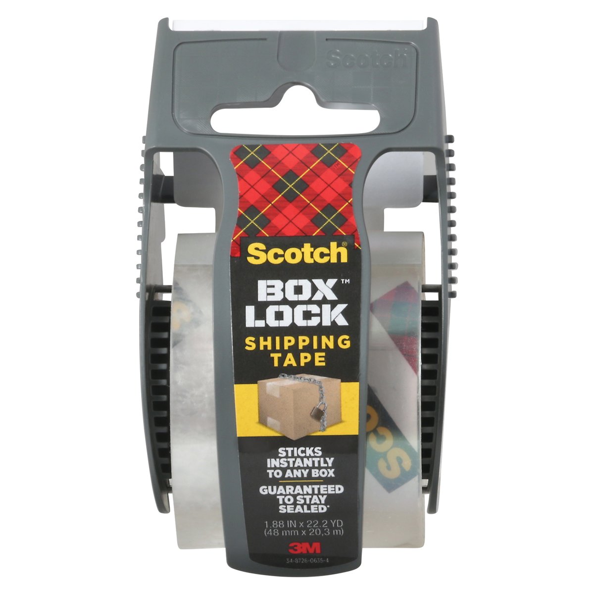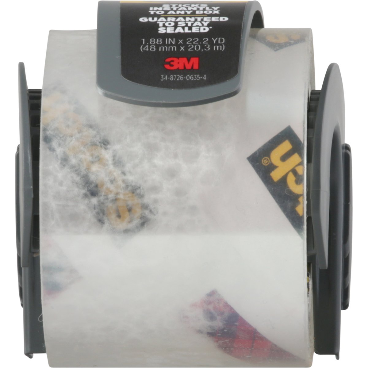1.88 in x 22.2 yd (48 mm x 20.3 m). Sticks instantly to any box. Proof o purchase required. 3m stationary and office supplies division. Guaranteed to stay sealed (If your does not stay sealed, 3M will refund the purchase price of this tape). www.ScotchBrand.com. Questions or comments? Call toll-free 1-800-328-6276. Made in USA with globally sourced materials.