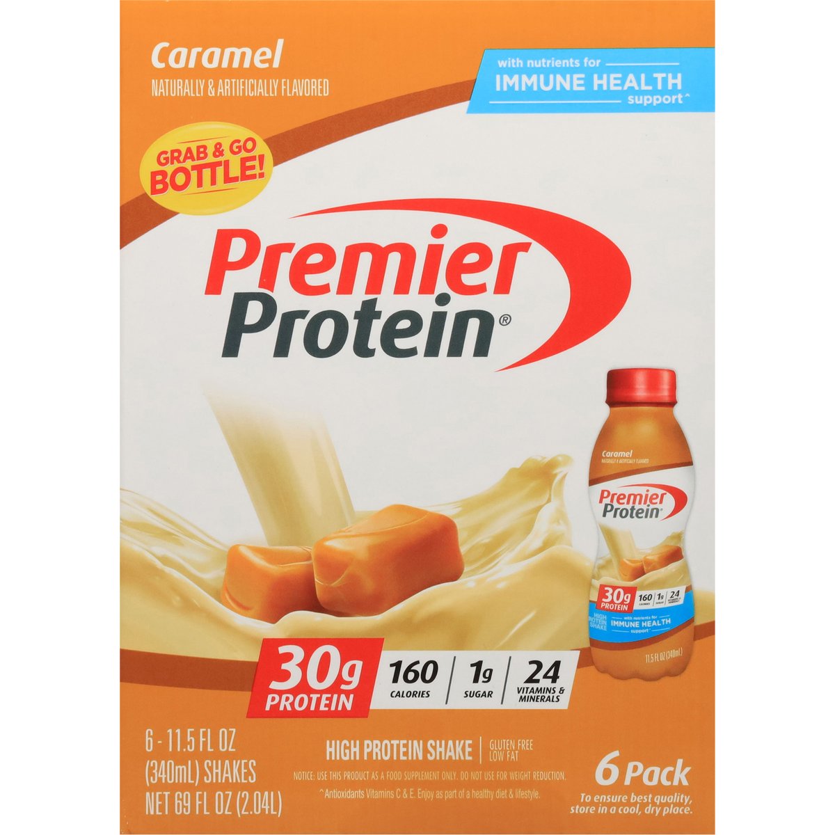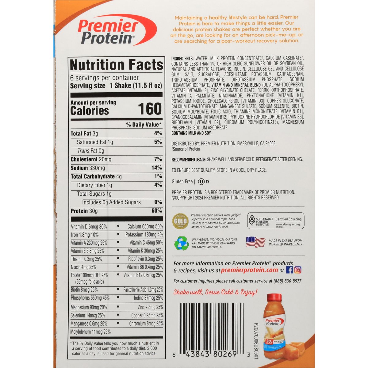 Naturally & artificially flavored. 30 g protein. 160 calories. 1 g sugar. Gluten free. Low fat. 24 vitamins & minerals. Grab & go bottle! With nutrients for immune health support^. Maintaining a healthy lifestyle can be hard. Premier protein is here to make things a little easier. Our delicious protein shakes are perfect whether you are on the go, are looking for an afternoon pick-me-up, or are searching for a post-workout recovery solution. ^ Antioxidants vitamins C & E. Enjoy as part of a healthy diet & lifestyle. premierprotein.com. For more information on Premier Protein products & recipes, visit us at premierprotein.com or Facebook. Instagram. For customer inquiries please call customer service at (888) 836-8977. American Masters of Taste Gold Superior Taste: Premier Protein shakes were judged Superior in a national triple-blind taste test conducted by an American Masters of Taste Chef Panel. On average, individual cartons are made with 65% renewable packaging materials. Sustainable Forestry Initiative: Certified sourcing. www.sfiprogram.org. On average, individual cartons are made with 65% renewable packaging materials. Made in the USA from imported ingredients.