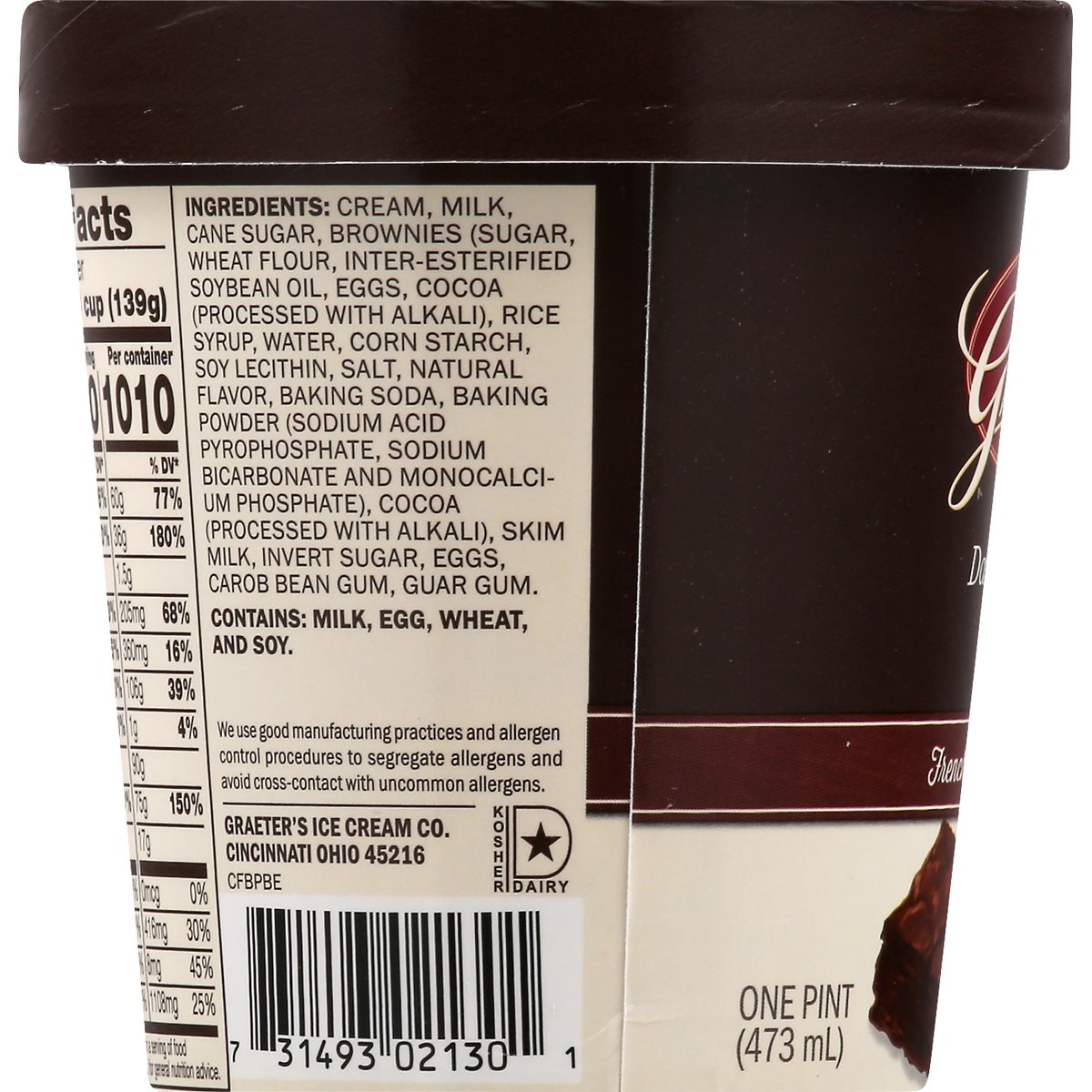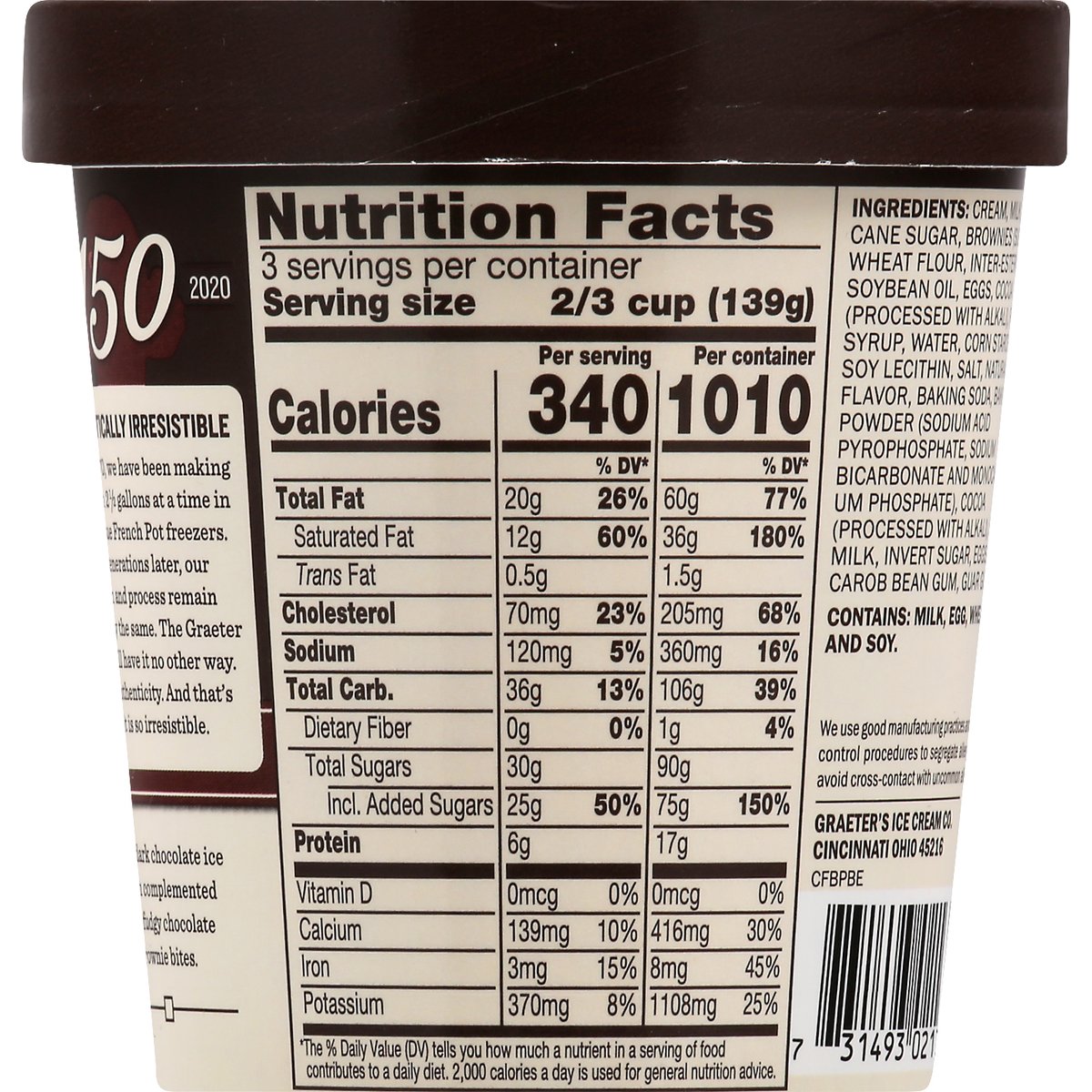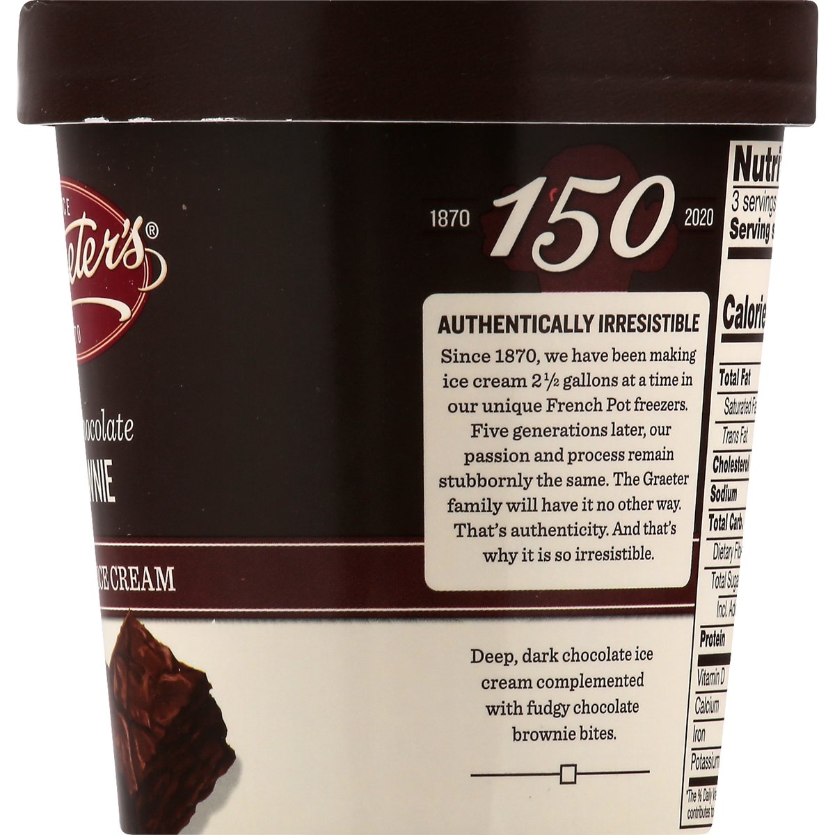 Since 1870. Authentically irresistible. Since 1870, we have been making ice cream 2-1/2 gallons at a time in our unique French Pot freezers. Five generations later, our passion and process remain stubbornly the same. The Graeter family will have it no other way. That's authenticity. And that's why it is so irresistible. Deep, dark chocolate ice cream complemented with fudgy chocolate brownie bites. We use good manufacturing practices and allergen control procedures to segregate allergens and avoid cross-contact with uncommon allergens.