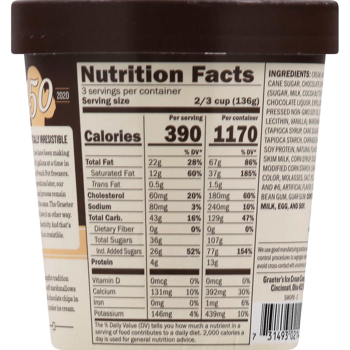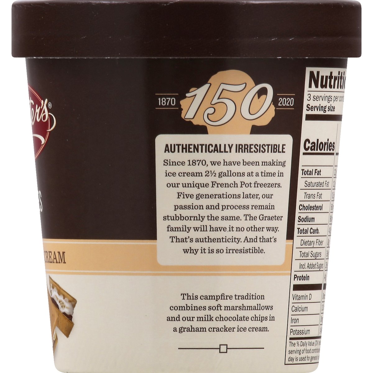 Gluten free. Since 1870. Authentically irresistible. Since 1870, we have been making ice cream 2-1/2 gallons at a time in our unique French Pot freezers. Five generations later, our passion and process remain stubbornly the same. The Graeter family will have it no other way. That's authenticity. And that's why it is so irresistible. This campfire tradition combines soft marshmallows and our milk chocolate chips in a graham cracker ice cream. We use good manufacturing practices and allergen control procedures to segregate allergens and avoid cross-contact with uncommon allergens.