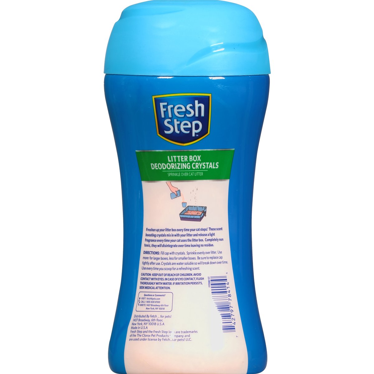 Sprinkle over cat litter. Conceals odors. Pet friendly. Dissolves over time. Freshen up your litter box every time your cat steps! These scent boosting crystals mix in with your litter and release a light fragrance every time your cat uses the litter box. Completely non toxic, they will disintegrate over time leaving no residue. fetch4pets.com. Questions or comments? Visit: fetch4pets.com. Call: 1-855-430-8100. Write: 1407 Broadway 6th Floor New York, NY 10018. Made in U.S.A.