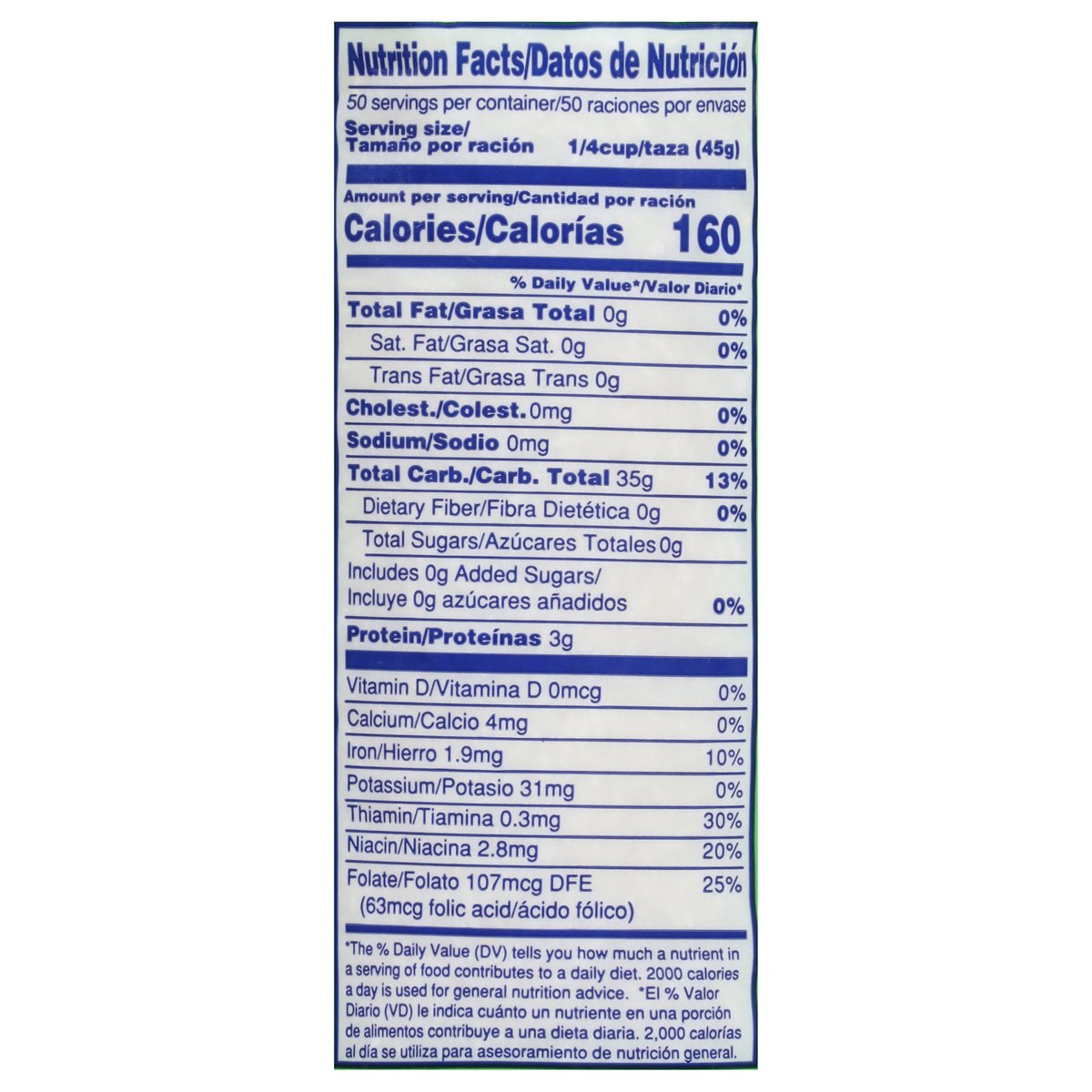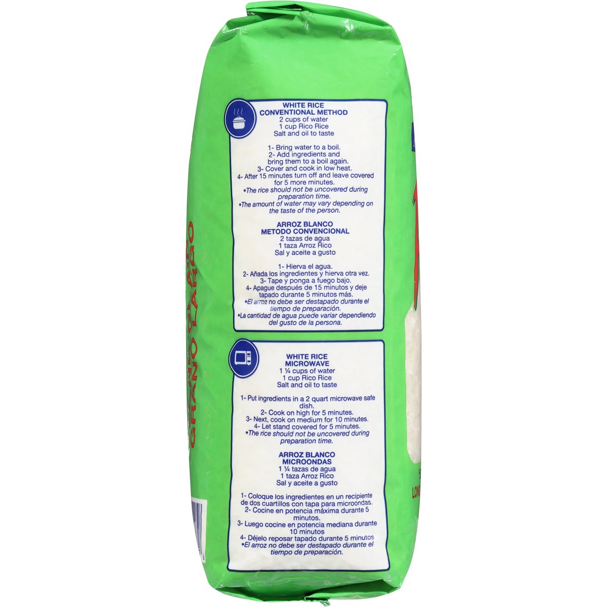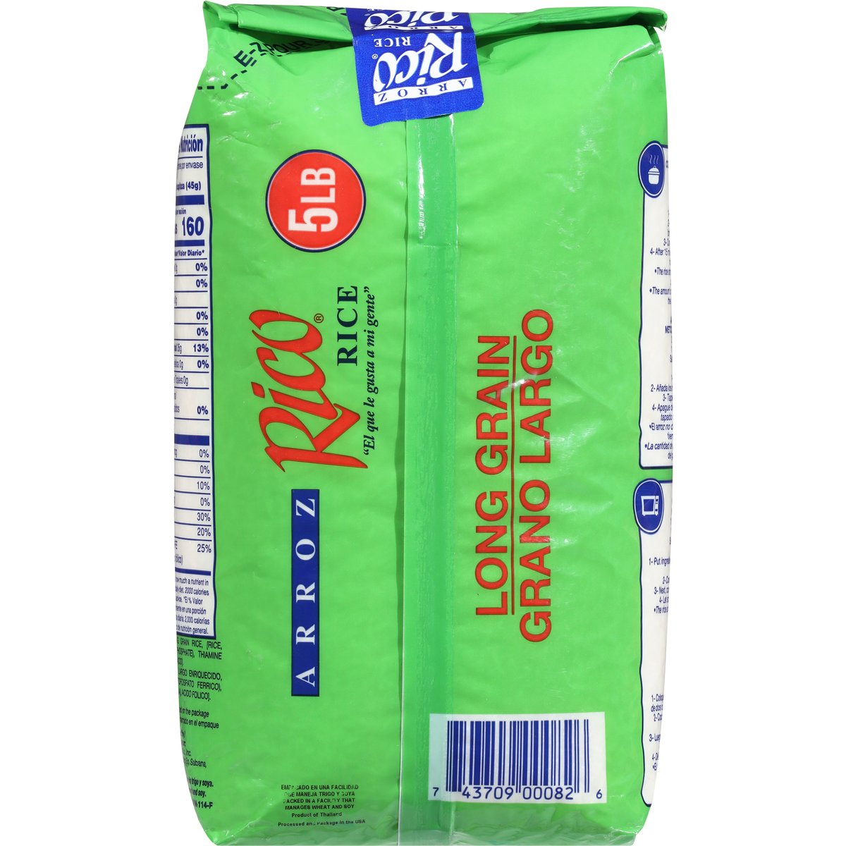 5 lbs. Source of folic acid. Not more than 4% broken grain. Polished and fortified. www.arrozrico.com. Country of Origin: United States.