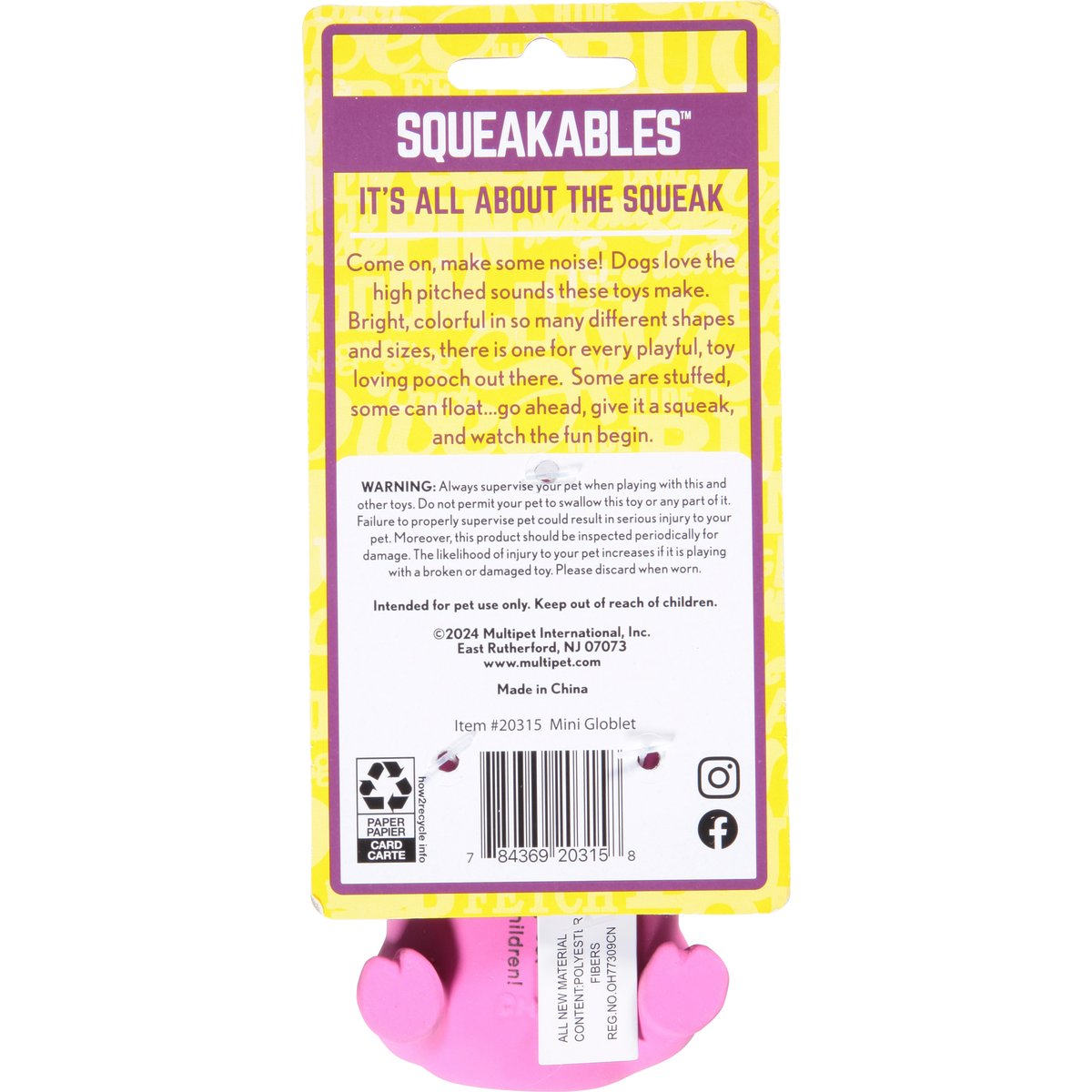 Pet fun, multiplied. Encourages exercise and interaction. Squeakers stimulate play. Soft material great for gentle chewers. It's all about the squeak. Come on, make some noise! Dogs love the high pitched sounds these toys make. Bright, colorful in so many different shapes and sizes, there is one for every playful, toy loving pooch out there. Some are stuffed, some can float - go ahead, give it a squeak, and watch the fun begin. www.multipet.com. how2recycle.info. Instagram. Facebook. Made in China.