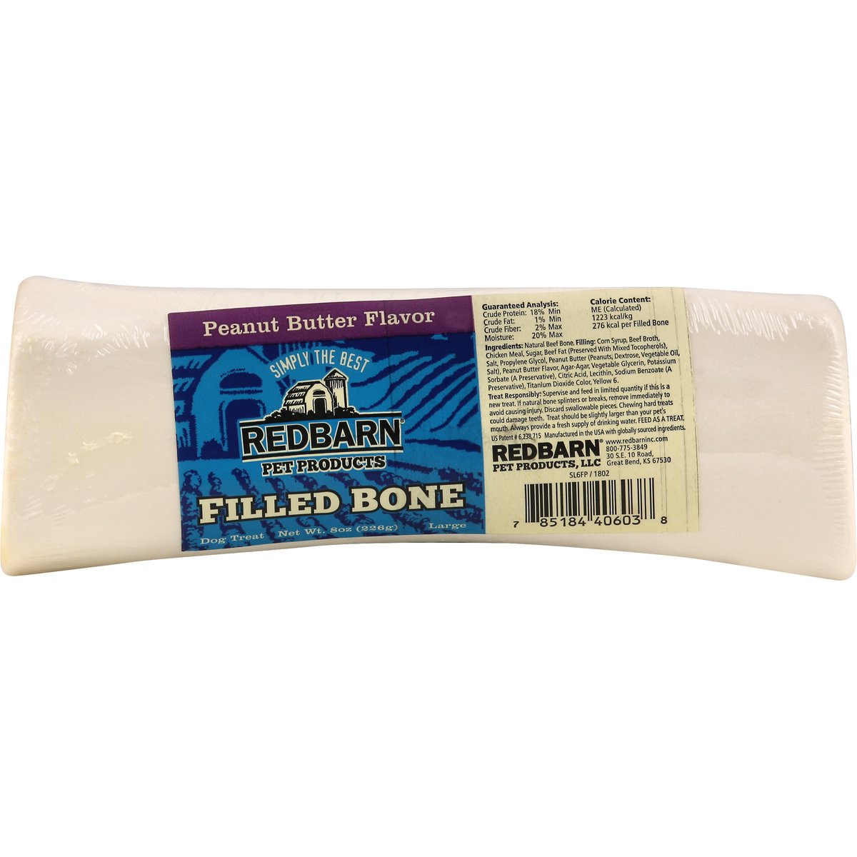 Redbarn Dog Treat, Filled Bone, Peanut Butter Flavor, Large