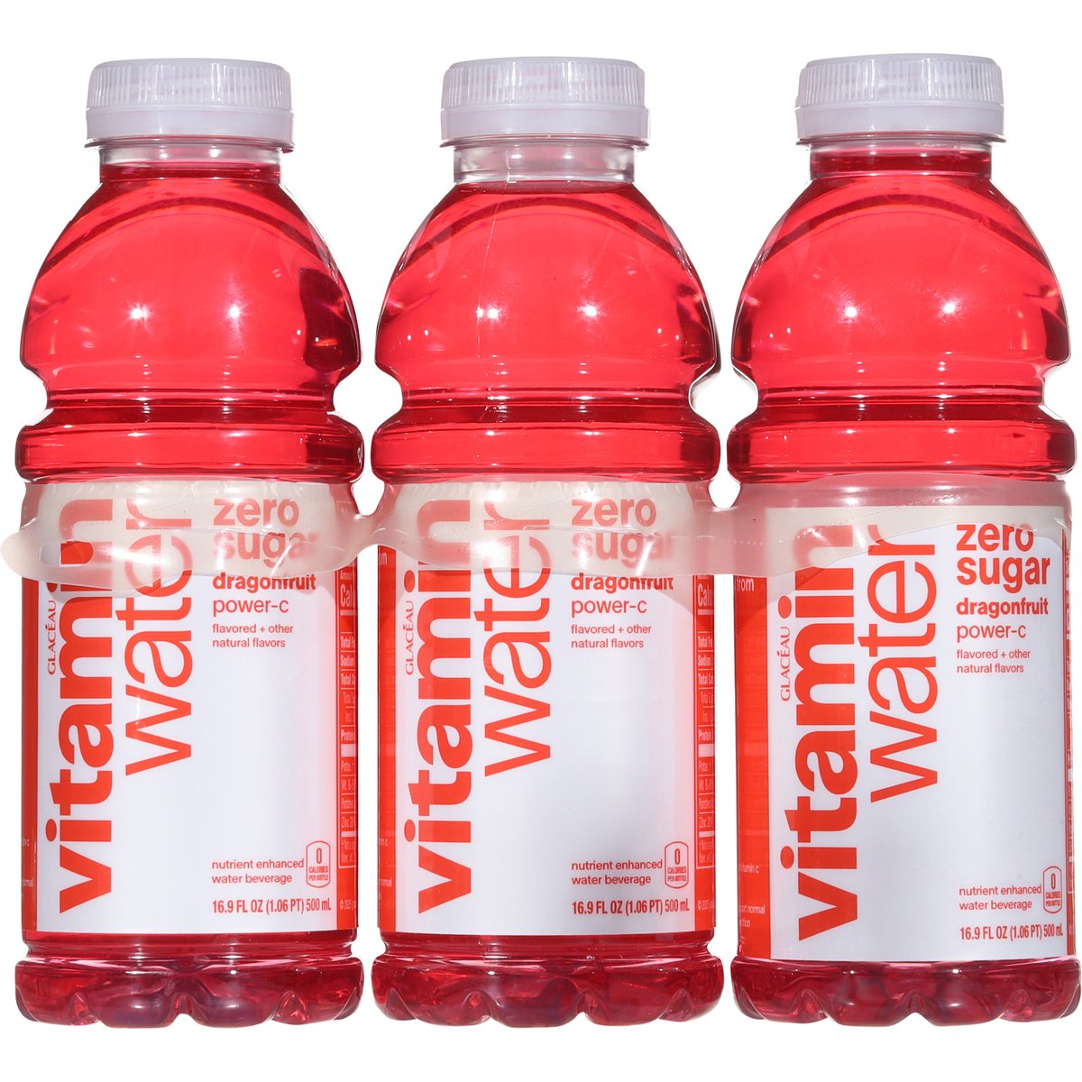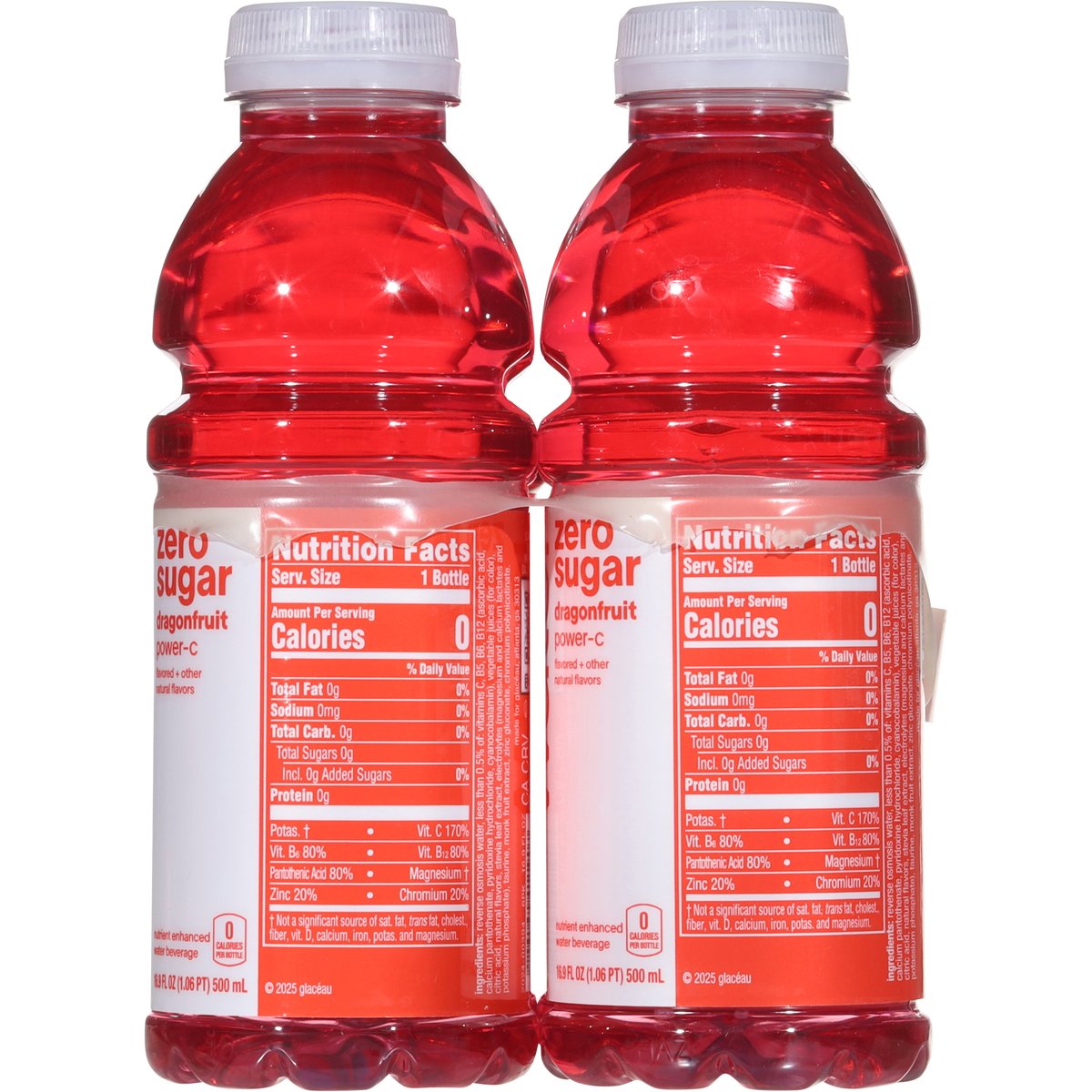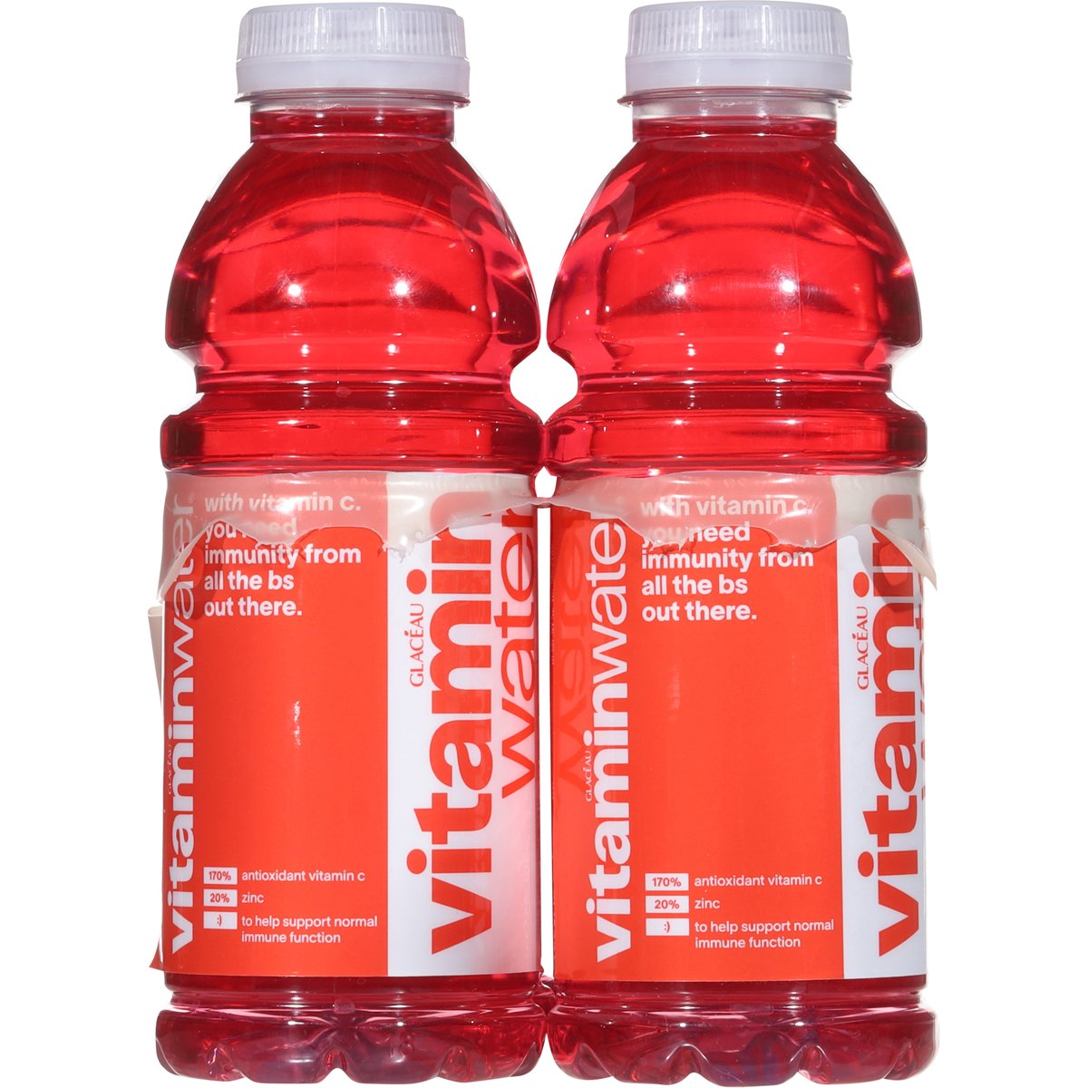 Nutrient enhanced water beverage. Flavored other natural flavors. 0 calories per bottle. Zero sugar. 170% antioxidant vitamin C. 20% zinc to help support normal immune function. With vitamin c you need immunity from all the bs our there. how2recycle.info. SmartLabel: Scan for more food information or call 1-877-Glaceu. 1-877-Glaceu. Recycle me.