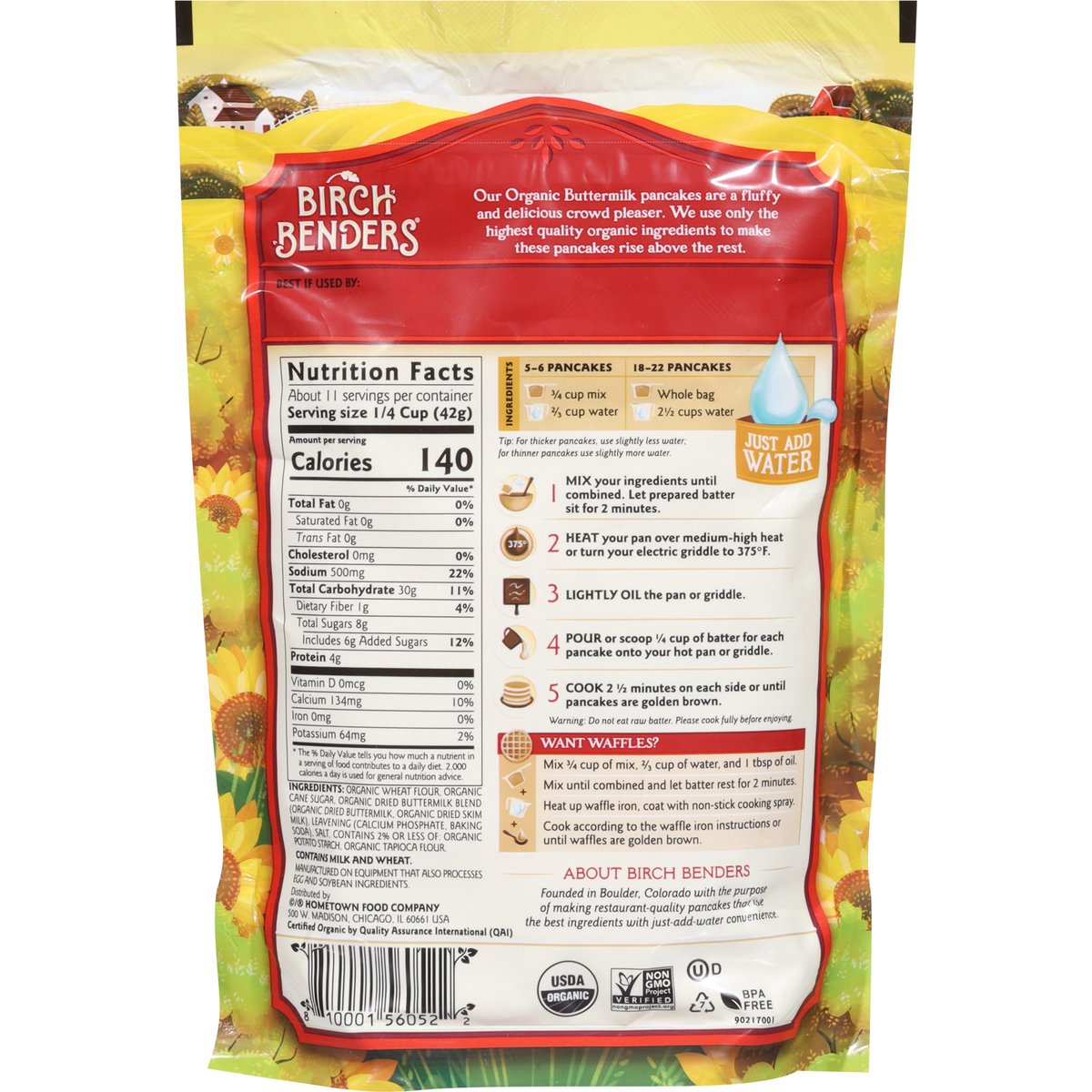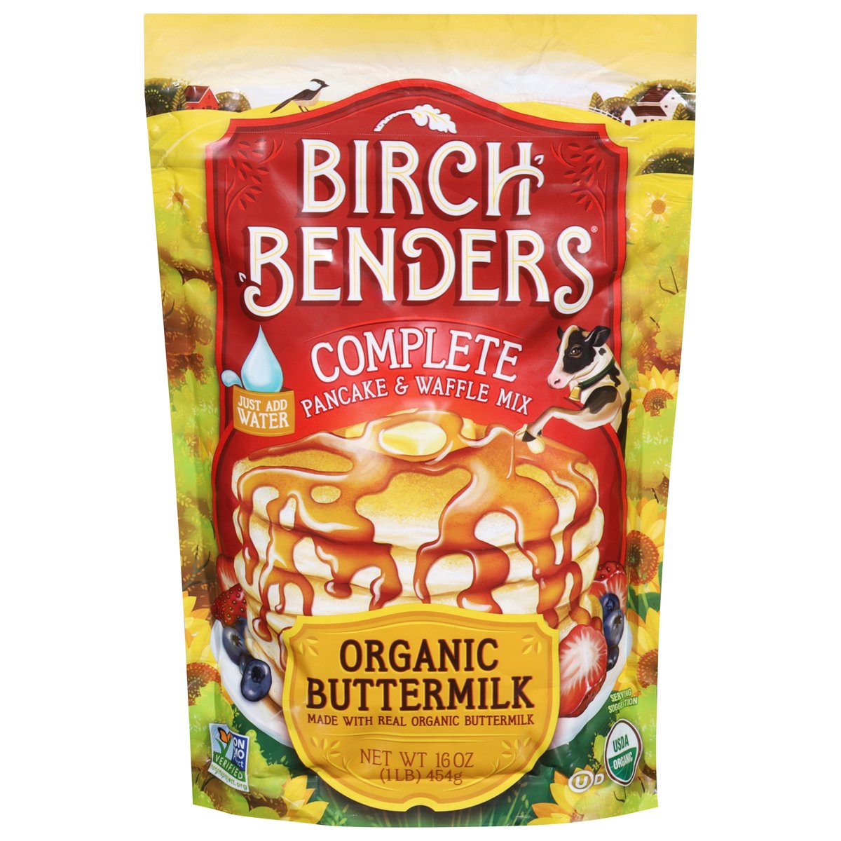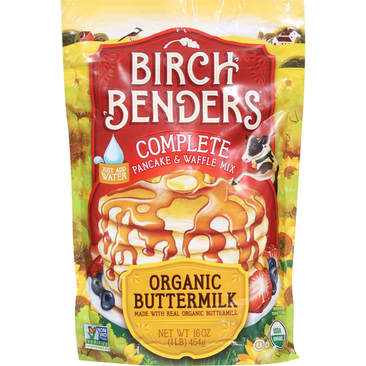 USDA Organic. Certified Organic by Quality Assurance International (QAI). Non-GMO Project verified. nongmoproject.org. Just add water. Our Organic Buttermilk pancakes are a fluffy and delicious crowd pleaser. We use only the highest quality organic ingredients to make these pancakes rise above the rest. About Birch Benders: Founded in Boulder, Colorado with the purpose of making restaurant-quality pancakes that use he best ingredients with just-add-water convenience. BPA free.