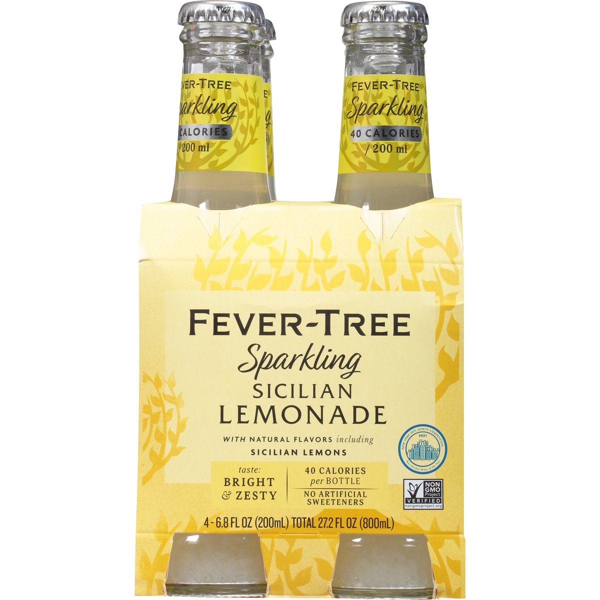 With natural flavors including sicilian lemons. Contains natural flavors and no artificial sweeteners. 40 calories per bottle. Non-GMO Project verified. nongmoproject.org. Taste: Bright & zesty. No artificial sweeteners. Because 3/4 of your drink is the mixer. www.fever-tree.com. For more information about all our products please visit: www.fever-tree.com. New York Spirits Competition 2021. Non alcohol mixer of the year. Please recycle. Produced in the UK.