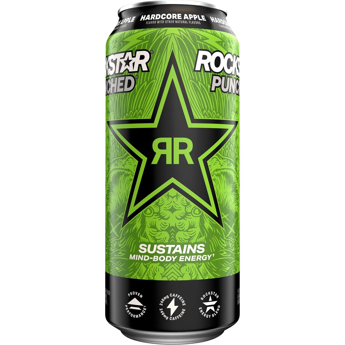 Flavor with other natural flavors. 250 calories per can. Guarana. B-Vitamins. Taurine. 240 mg caffeine. Caffeine Content: 240 mg/16 fl oz. Taurine. Guarana. rocksterenergy.com. SmartLabel: Scan for info. Call for info 1-800-433-2652. Instagram: rockstrarenergy. We’re here to help. 800-433-2652. Please recycle.