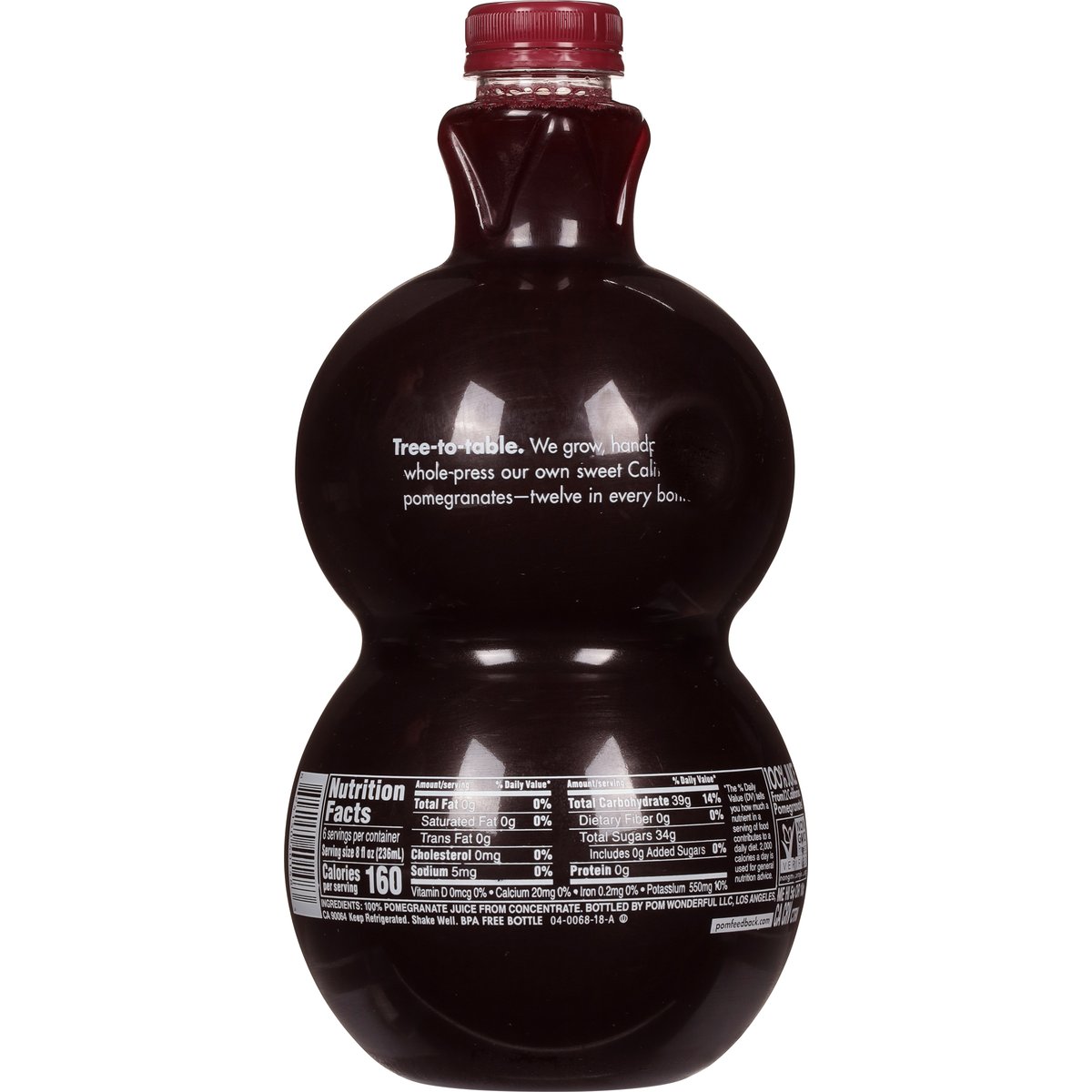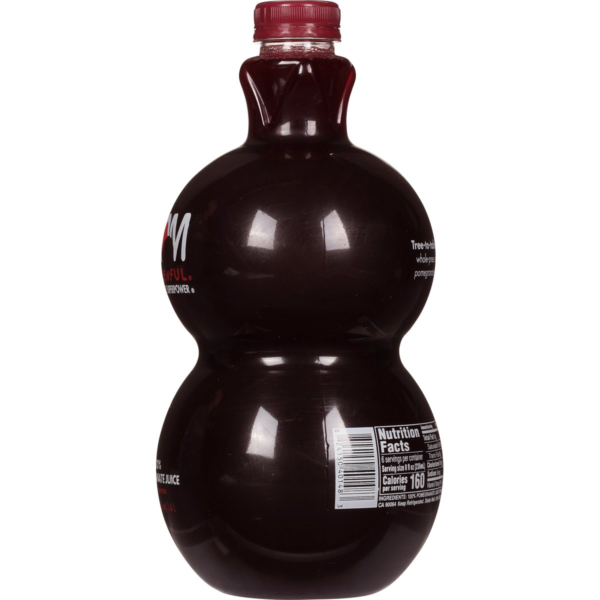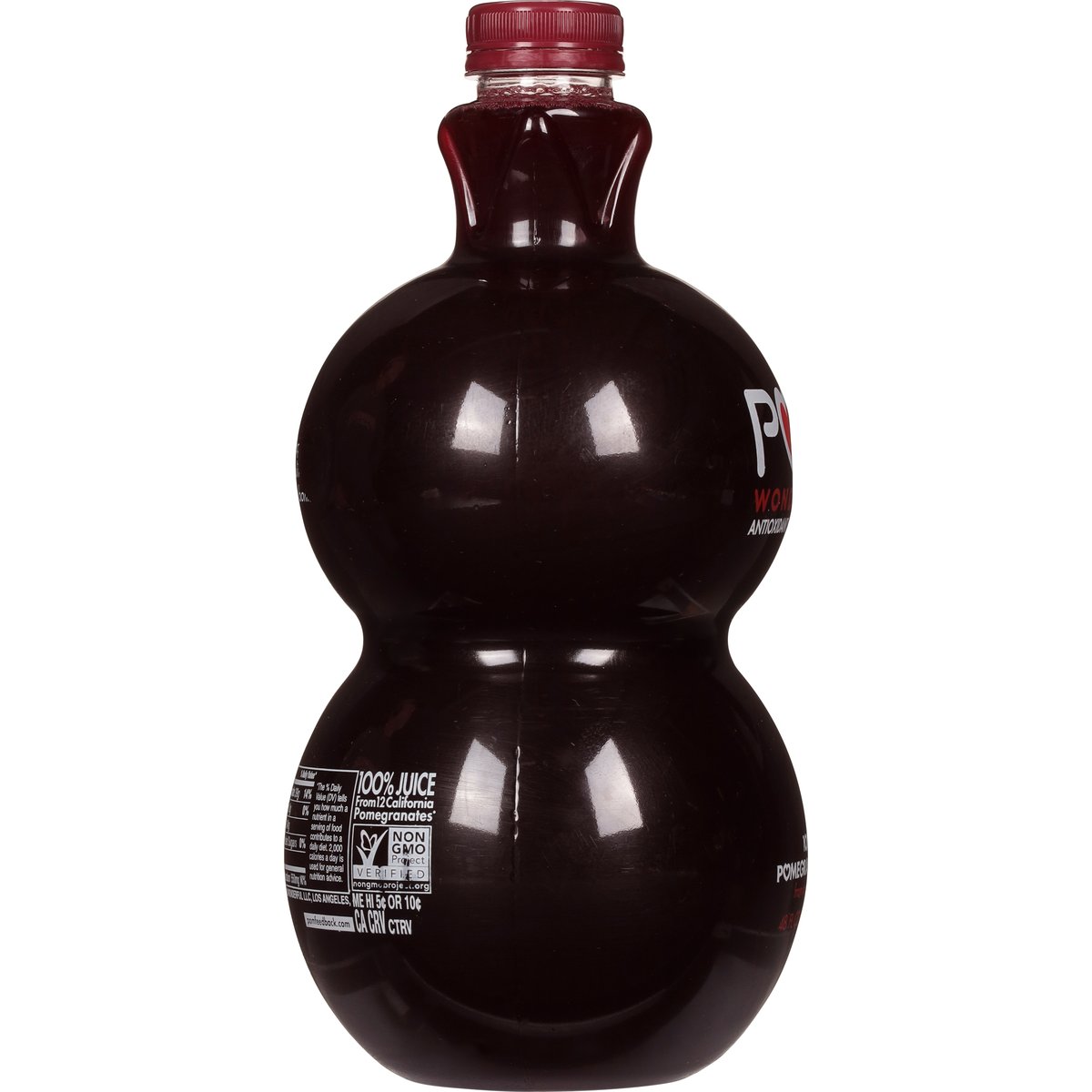 100% juice pomegranate from concentrate. Non-GMO Project verified. nongmoproject.org. Super powered. Pomegranates are an antioxidant poewerhouse and the original super fruit. So drink up, up and away. From 12 California pomegranates. pomfeedback.com. BPA free bottle.