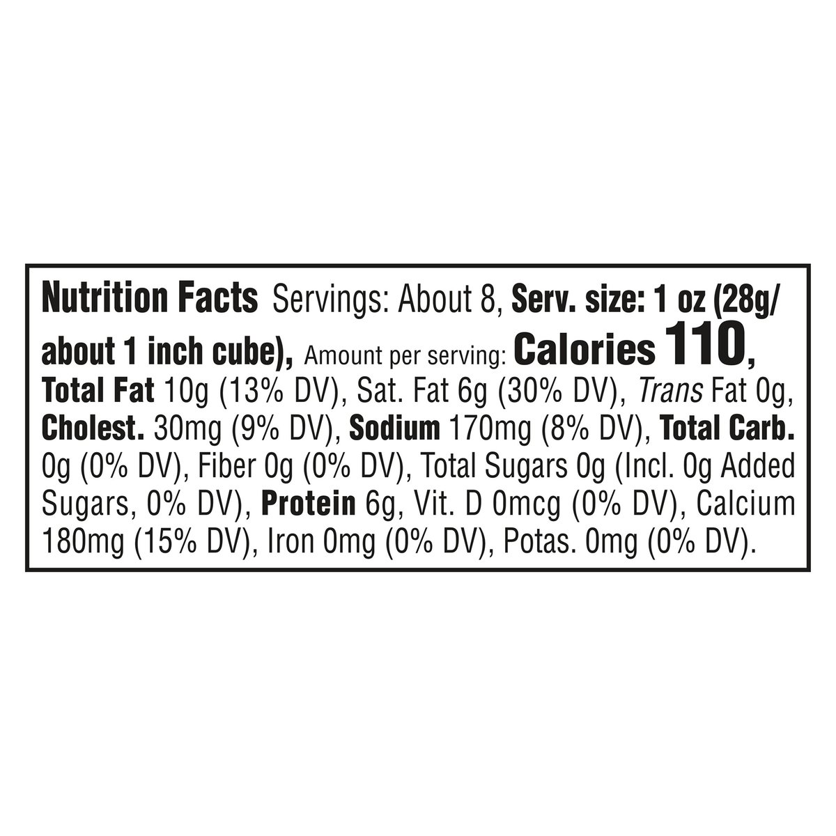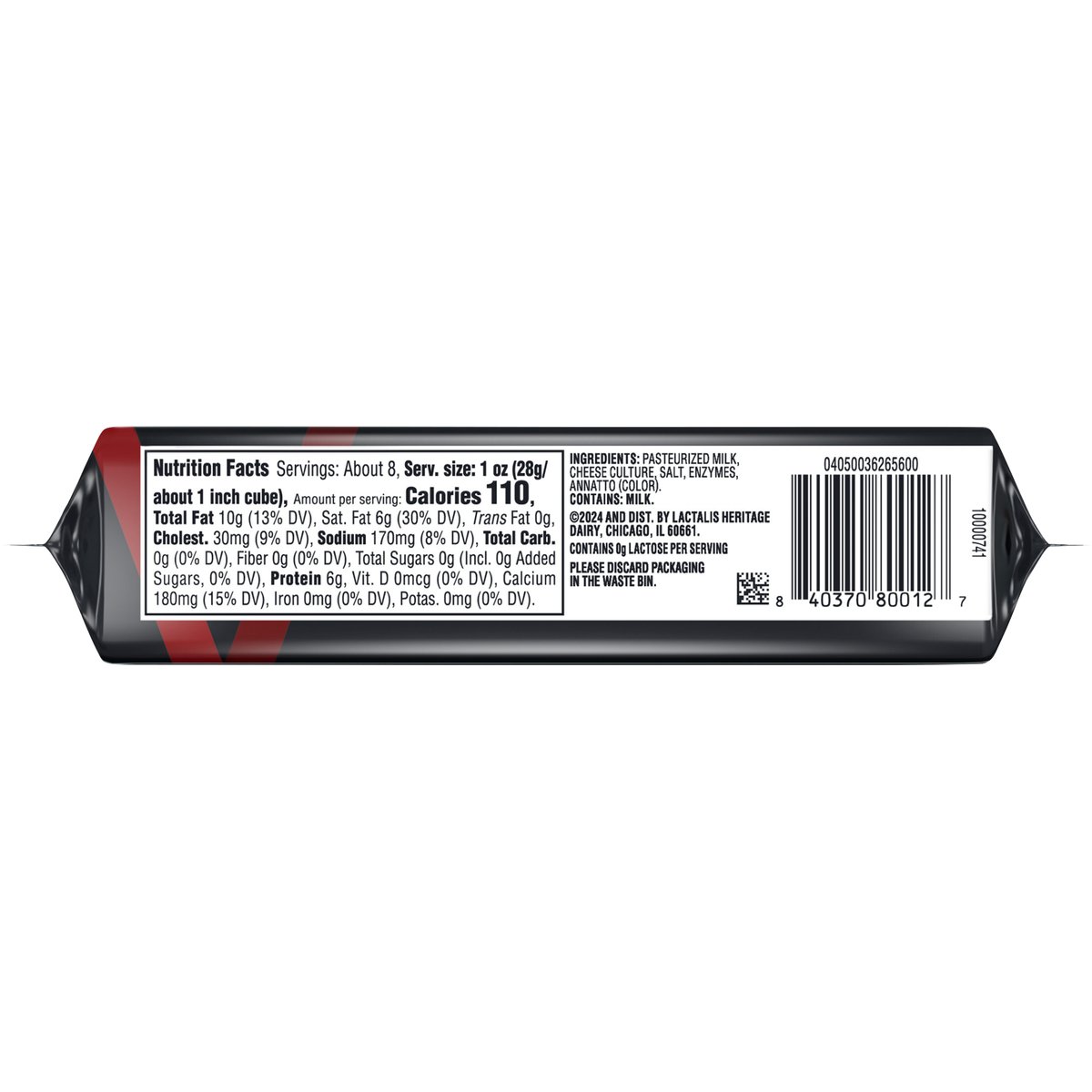 Our rich & bold cheddar, perfect for pairing. 110 calories per 1 oz. Contains 0 g lactose per serving. See nutrition information for fat and saturated fat content. crackerbarrelcheese.com. 1-855-237-8748. Please discard packaging in the waste bin.