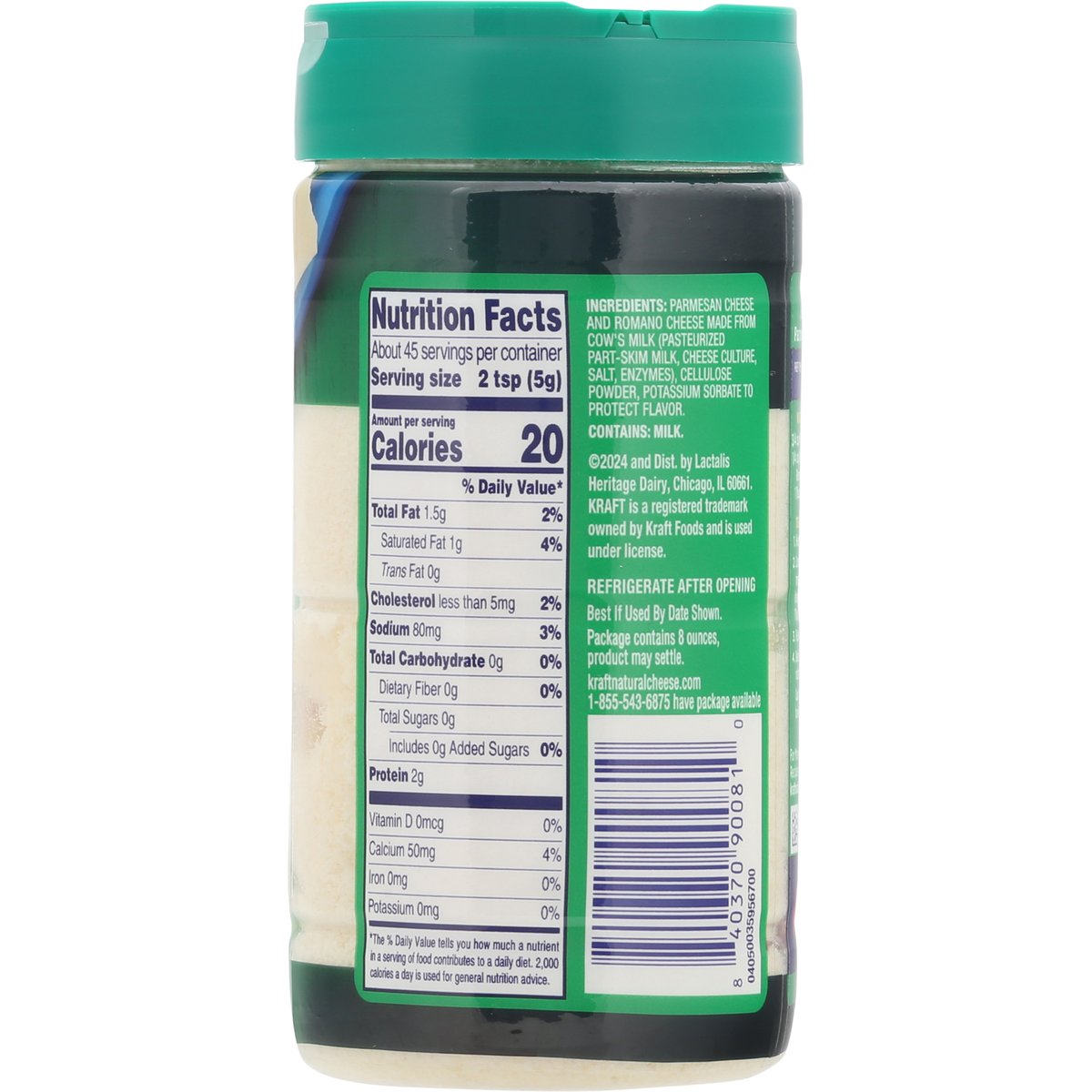 Per 2 Tsp: 20 calories; 1 g sat fat (4% DV); 80 mg sodium (3% DV); 0 g total sugars. Yes to the taste you love. Always starts with fresh milk. Package contains 8 ounces, product may settle. kraftnaturalcheese.com. how2recycle.info. 1-855-543-6875 have package available.