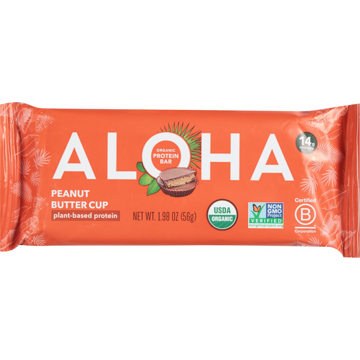 14 g protein. USDA Organic. Certified Organic by QAI. Certified vegan. Vegan.org. Gluten-free. Soy-free. Dairy-free. Non-GMO Project verified. nongmoproject.org. Plant-based protein. care@aloha.com. Certified B Corporation.