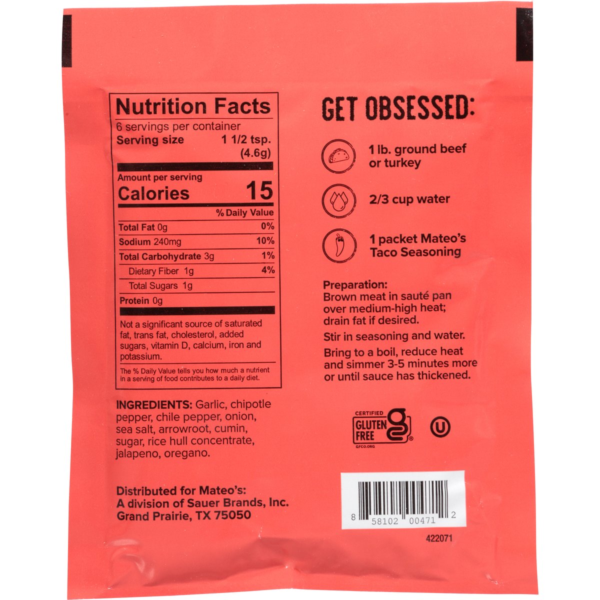 No artificial flavors or colors. Per 1.5 tsp Serving: 15 calories; 0 g sat fat (0% DV); 240 mg sodium (10% DV); 1 g total sugars. Certified gluten free. gfco.org. Uniquely different. No MSG.