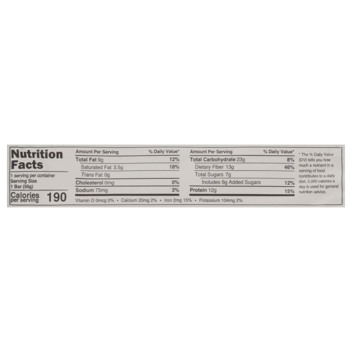 190 Calories. 12g Protein. 13g fiber. No gluten. No dairy. No soy. Certified vegan. Vegan.org. Certified gluten free. gfco.org. Non-GMO Project verified. nongmoproject.org. Yeah... It's a protein bar. No sugar alcohols. All delicious. Simply made with: Peanuts. Cacao powder. Pea protein. Cassava. And no junk. P.S. Keep me cool. Certified Seed Oil Free. Trubar.com. Join us at Trubar.com.