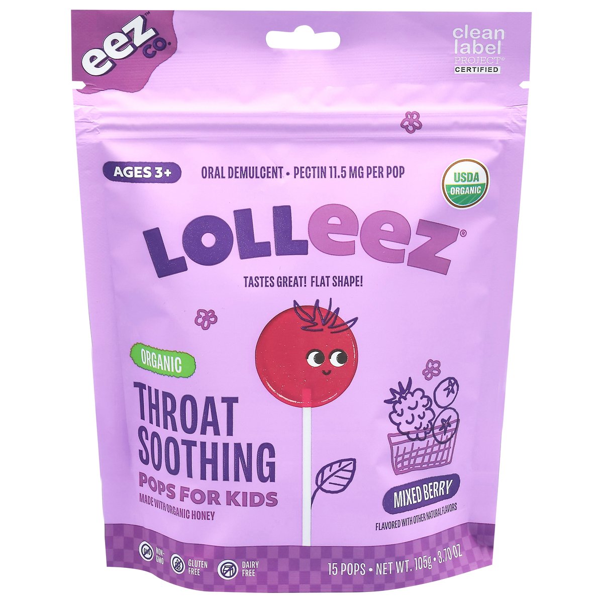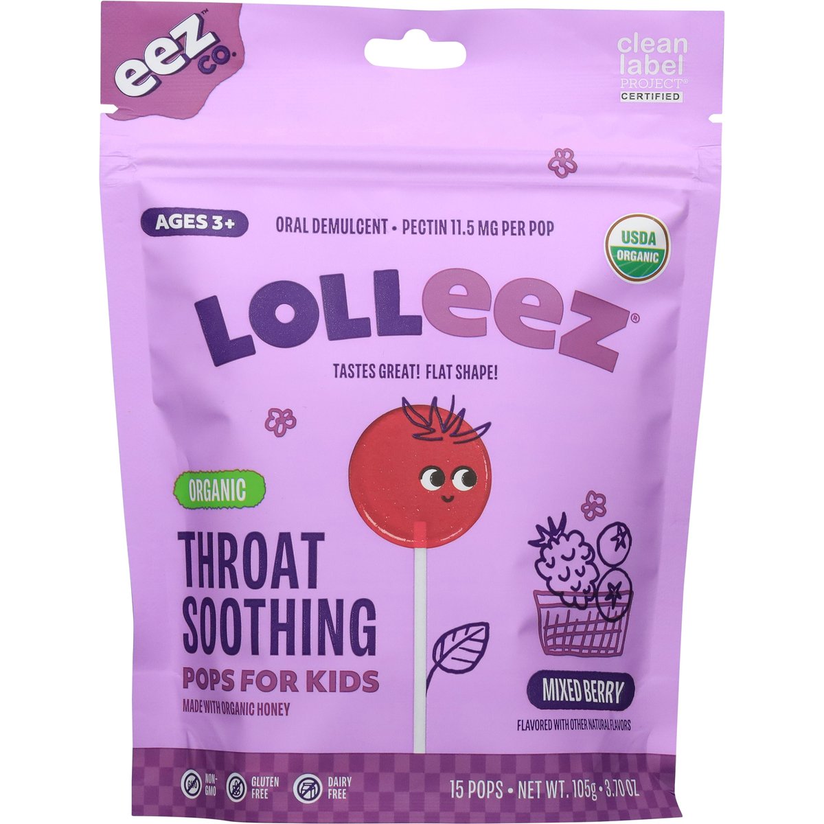 EEZ Co. Lolleez Mixed Berry For Kids Organic Throat Soothing Pops