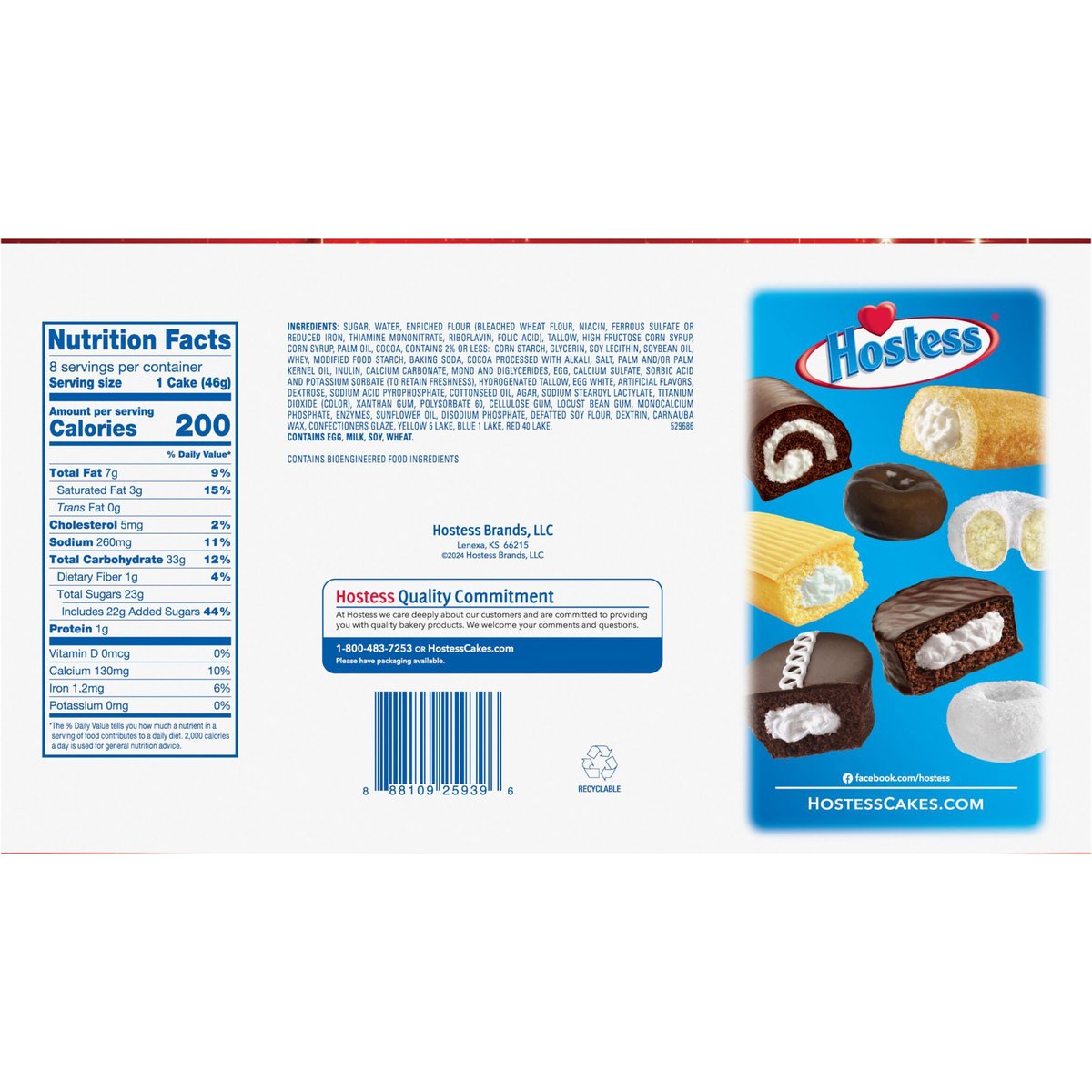 Limited Edition Frosted chocolate cake with creamy filling. Contains bioengineered food ingredients. 8 Individually wrapped cakes. Hostess Quality Commitment: At Hostess we care deeply about our customers and are committed to providing you with quality bakery products. We welcome your comments and questions. 1-800-483-7253 or HostessCakes.com. Please have packaging available. HostessCakes.com. Facebook: facebook.com/hostess. Recyclable.