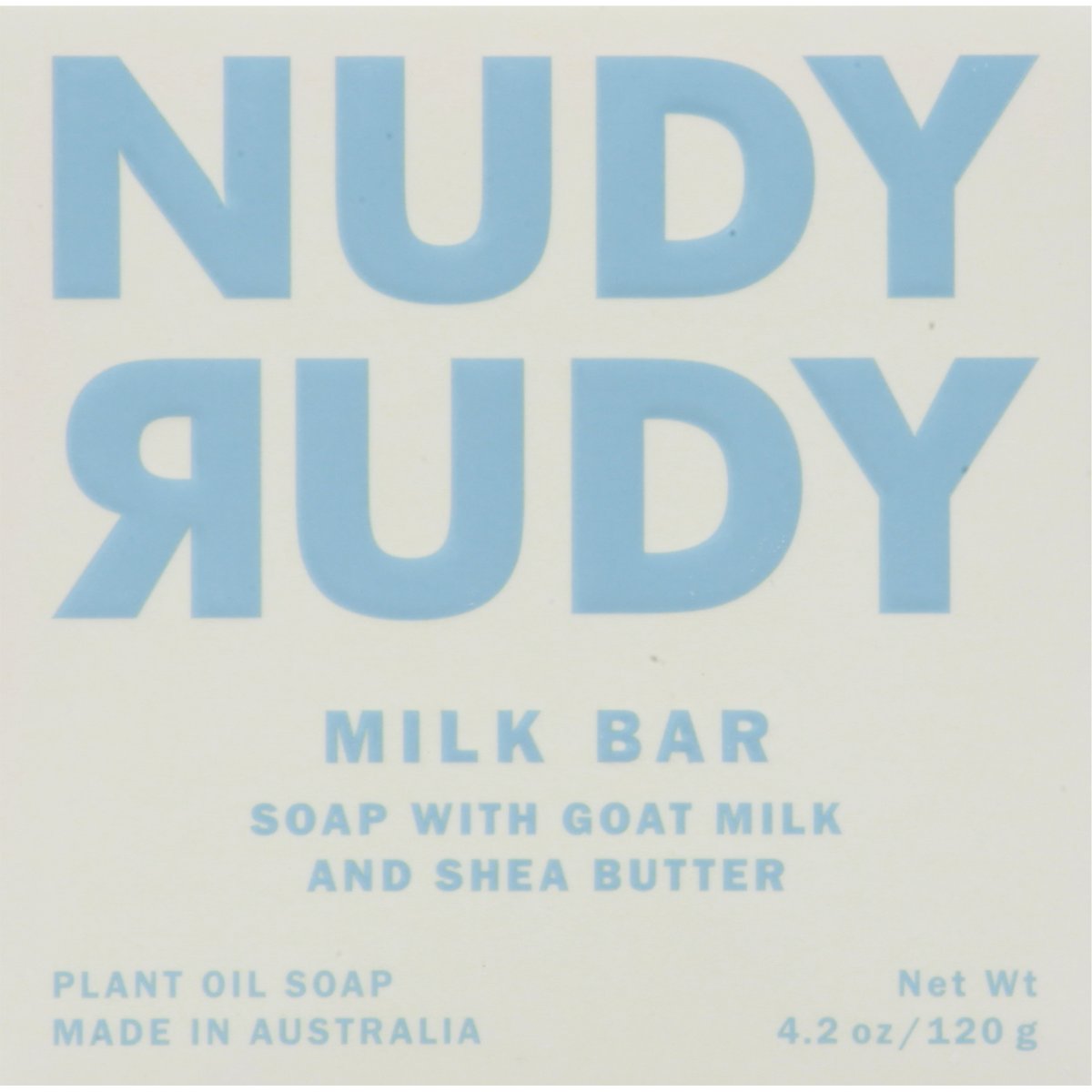 Soap with goat milk and shea butter. Plant oil soap. Good. Cheeky. Soap. Cheeky soap with a splash of goat milk somebody milked to goat, so you don't have to. Enriched with shea butter. Soapy, sudsy and soft all over. Get Nudy and just add water. Just soap. No opera. No plastics. No slow-motion shower ads. No weird chemical number thingies. Just good, sustainable soap. No artificial preservatives. Nudyruby.com. (at)nudyrudyus. Cruelty free. Made in Australia.